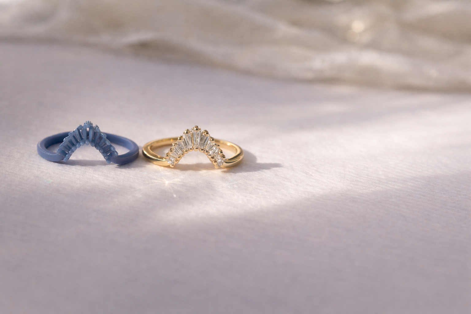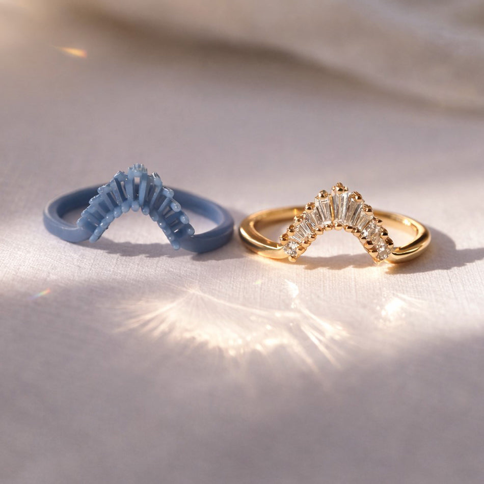 Order a wax mold of your favorite wedding band to preview the fit, proportions, and style at home—so you can move forward with complete confidence before placing your final order.