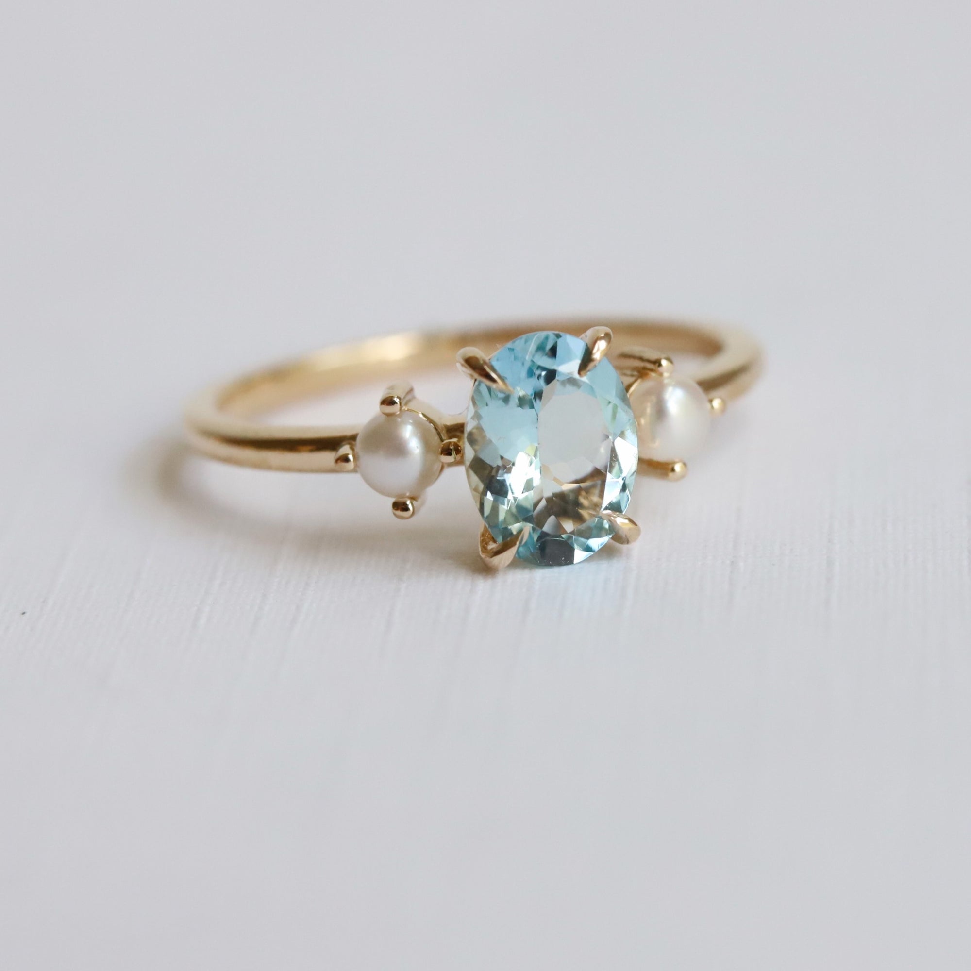 • EVA | 1 ct. Oval Aquamarine and Pearl Side Stone Ring