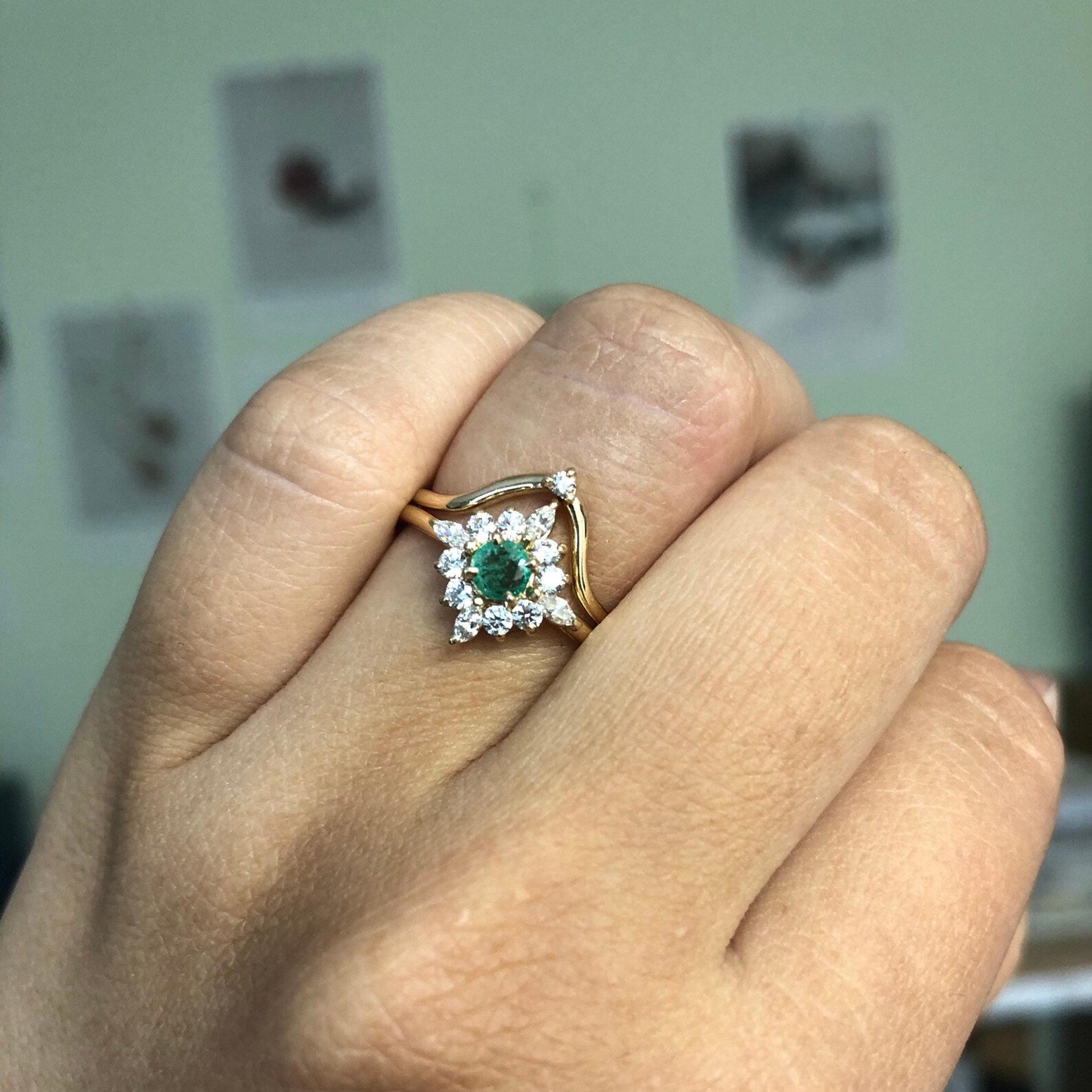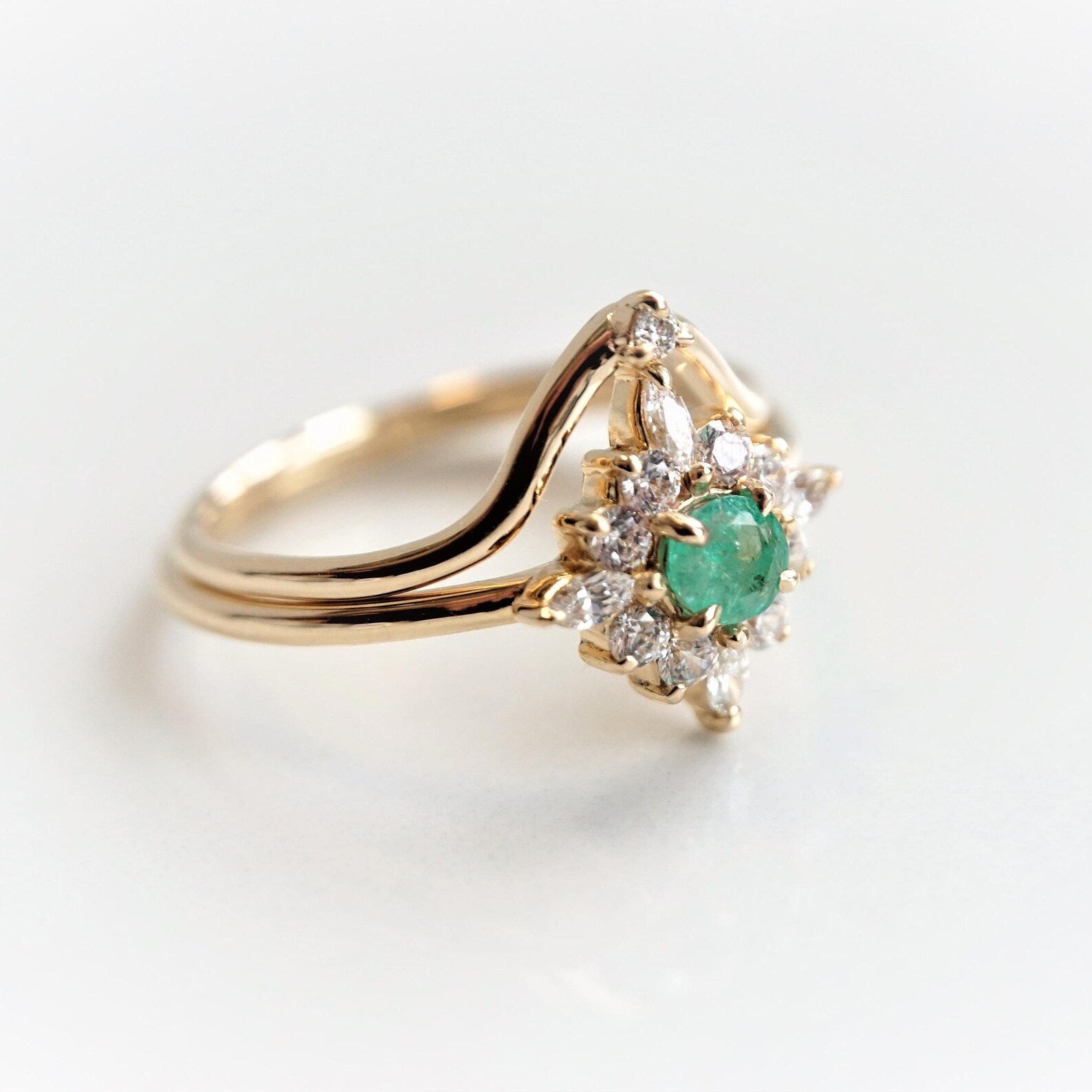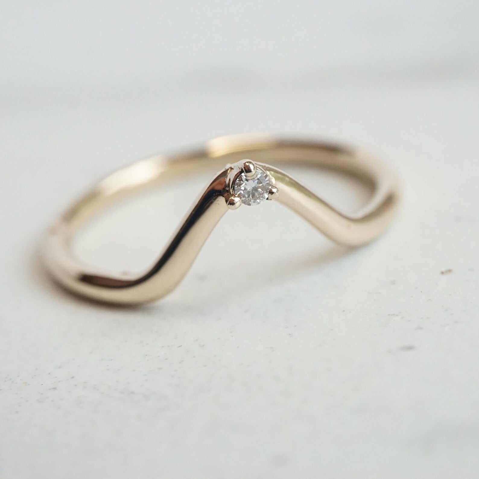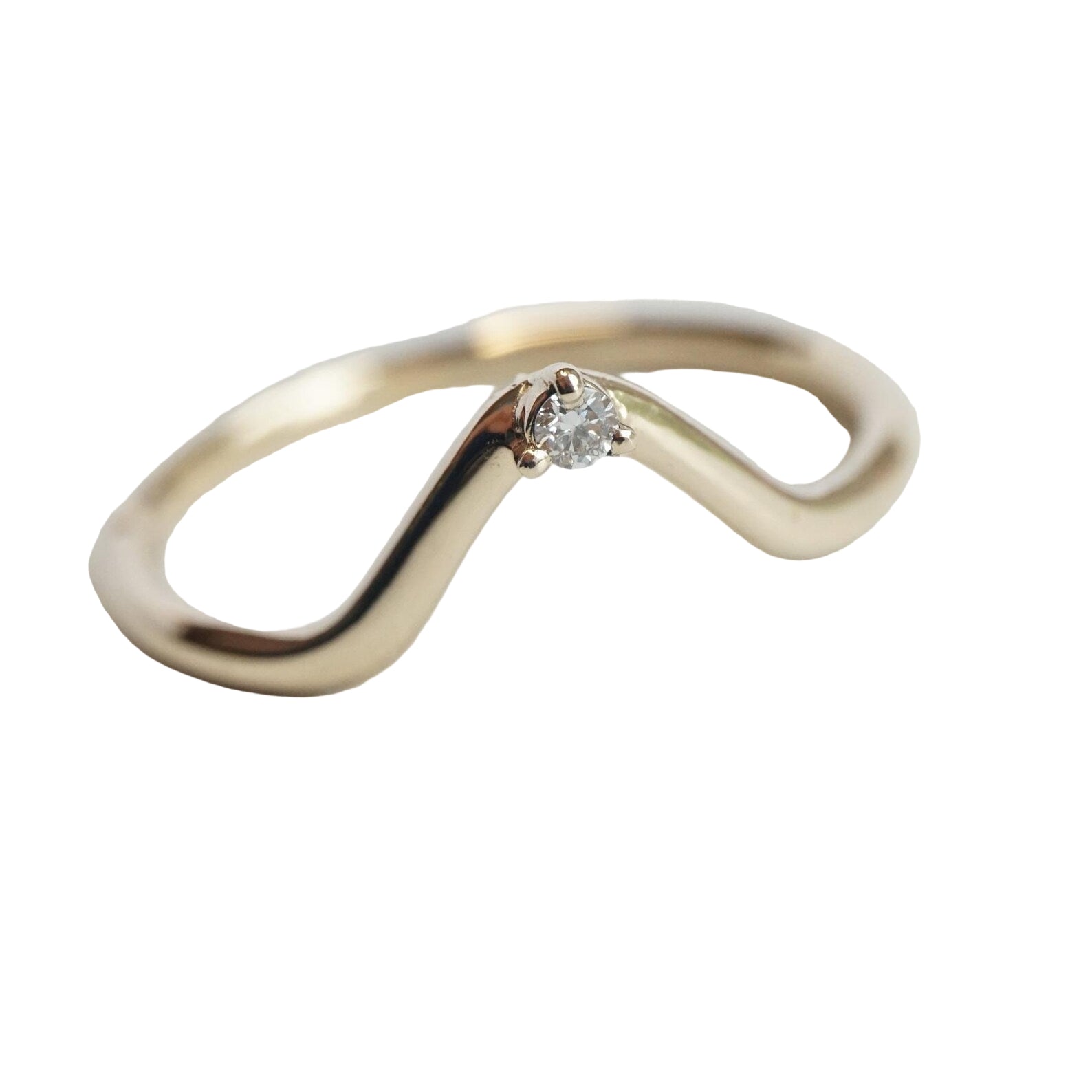 This V contour band complements the Skylar ring perfectly, featuring a single diamond accent at the V's peak for subtle sparkle. Wear it alone or stack it to add a distinctive touch to your engagement set.