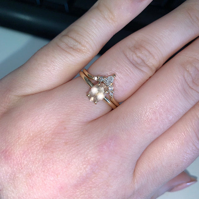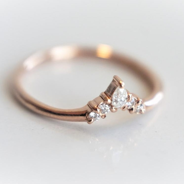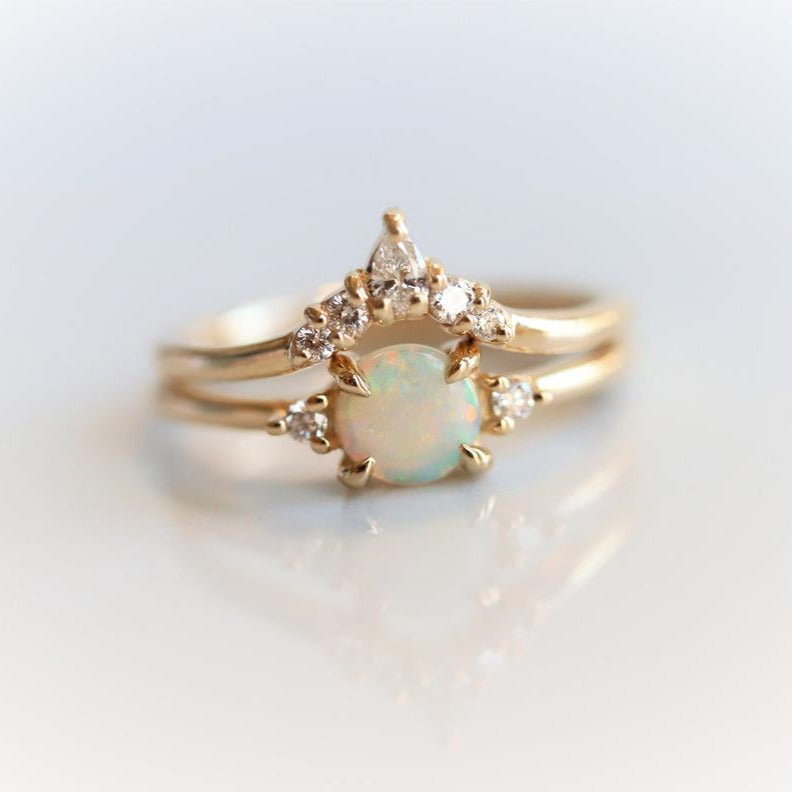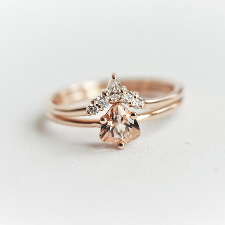 The Sophie Crown No.1 is a classic, finely crafted contour band designed to perfectly complement engagement rings sized between 0.5 and 1 carat, including our Sophie ring. Its subtle curvature ensures a seamless fit, enhancing the overall aesthetic while maintaining a delicate and sophisticated look. Ideal for those seeking an elegant yet understated addition to their ring stack.