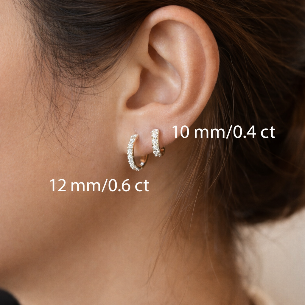 Elevate your everyday jewelry collection with these expertly crafted 14K gold huggie hoops. Each earring holds 0.3 carats of brilliant diamonds or lab-grown stones, delivering 0.6 total carats of refined sparkle. The 12mm hinged design sits close to the ear for a polished, secure fit that works seamlessly from desk to dinner. Made to order, these earrings are built for those who demand both quality and practicality. A versatile staple that complements any wardrobe and serves as a meaningful gift for the discerning jewelry lover.