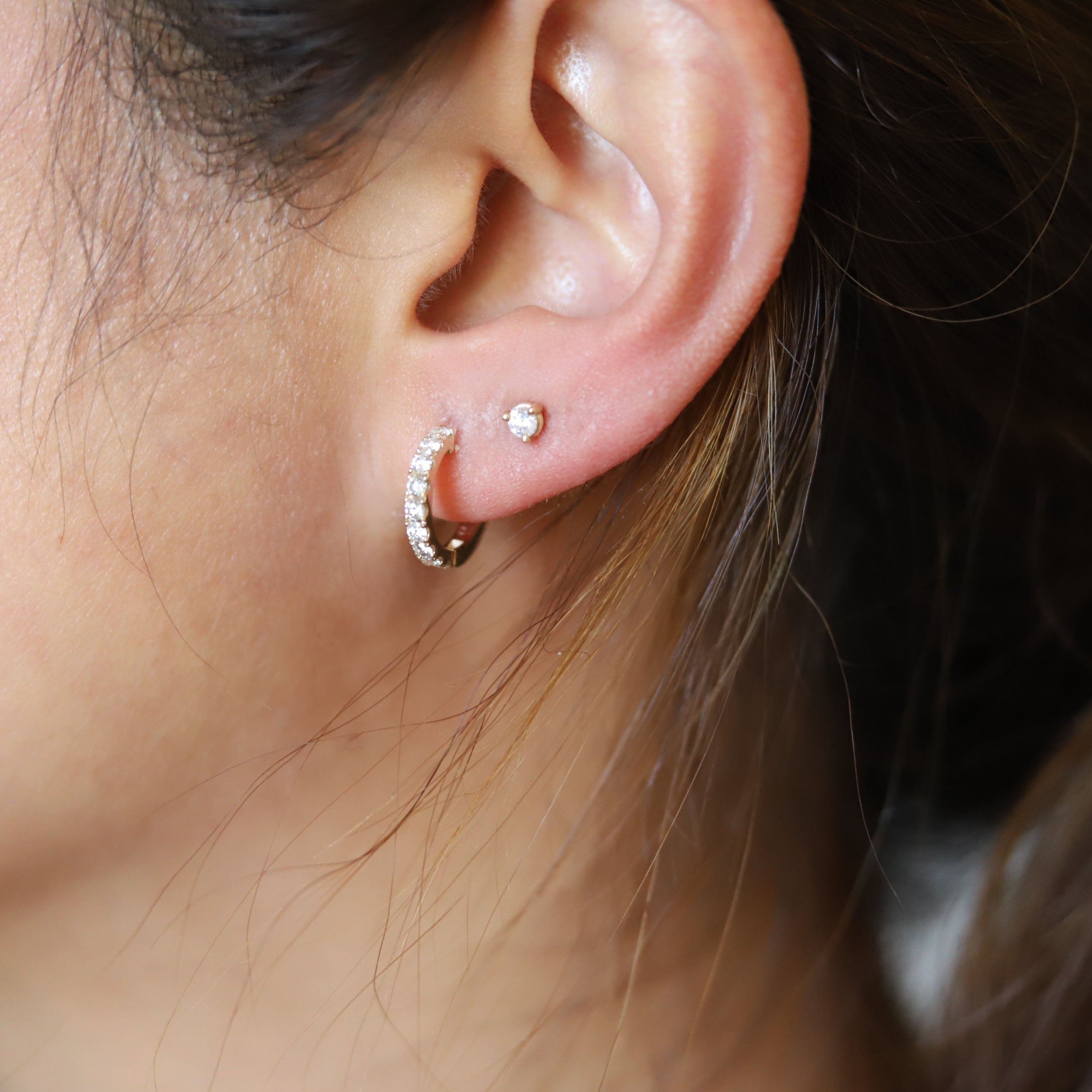 READY TO SHIP | 14K Diamond 0.6 ct. 12 mm Huggig Hoop Earrings