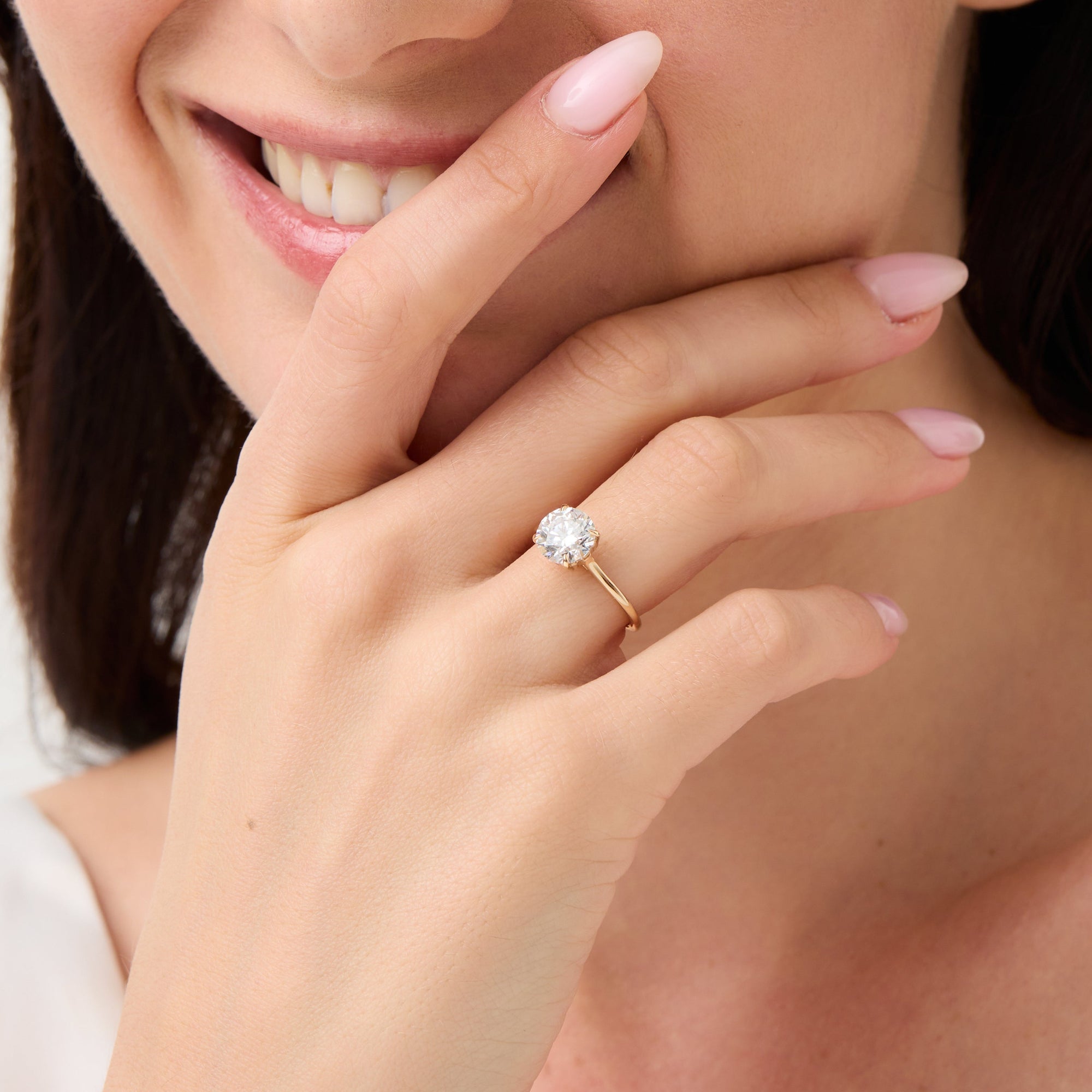 Mark your most meaningful milestone with this exquisitely handcrafted engagement ring, designed to capture the essence of enduring love. A luminous round brilliant diamond takes center stage, anchored by an elevated four-prong setting that flows into a striking Cathedral silhouette. Below, a gracefully arced round diamond adds refined dimension and sophistication. The meticulously polished band delivers both comfort and durability, seamlessly transitioning from ceremony to everyday wear. Thoughtfully engineered for versatility, this ring harmonizes beautifully with straight or contoured wedding bands, allowing you to curate your ideal bridal collection.