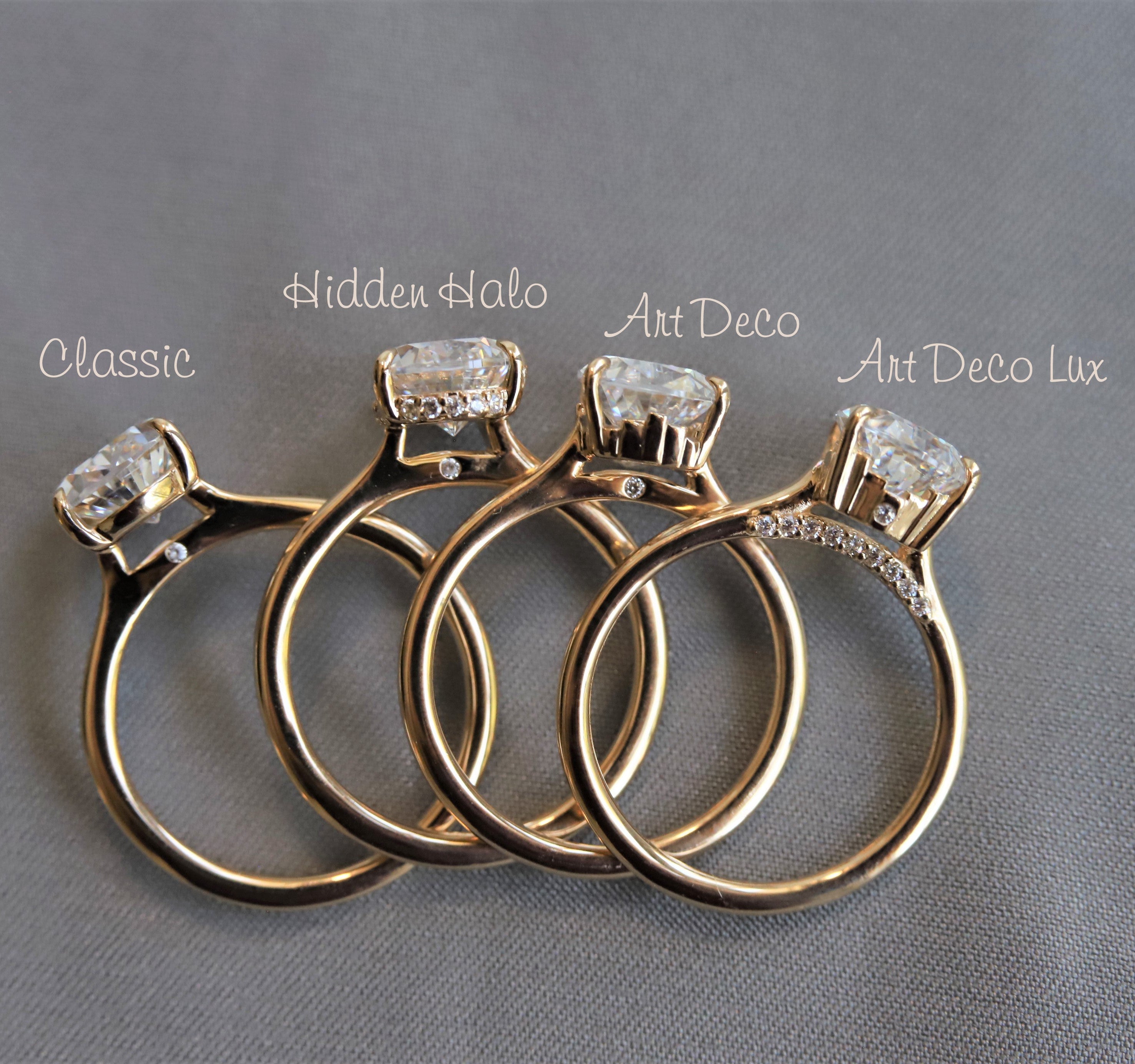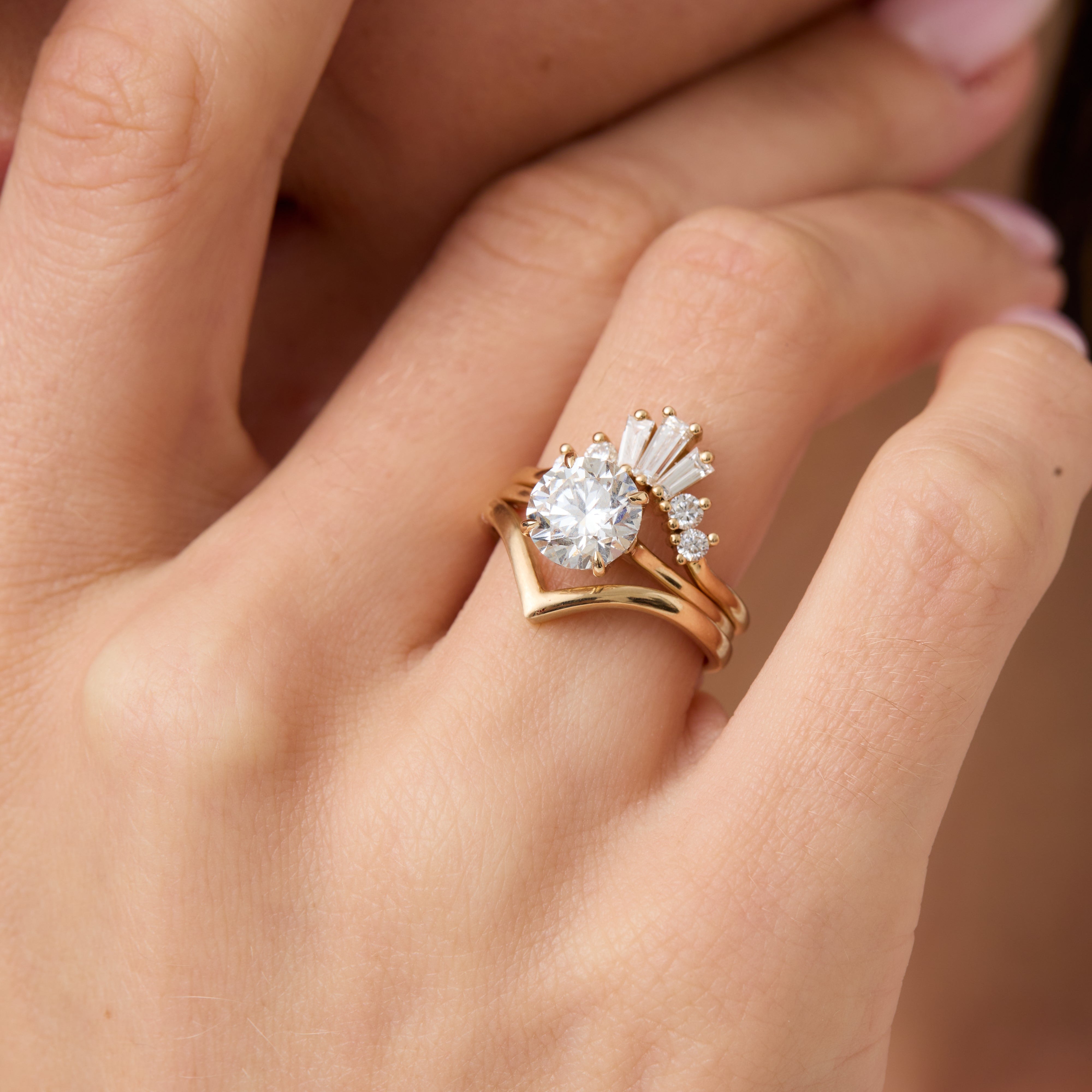 • Moissanite: A lab-created gemstone with high sparkle and durability, featuring a different sparkle pattern than diamonds with more rainbow fire, and a more gemstone-like appearance