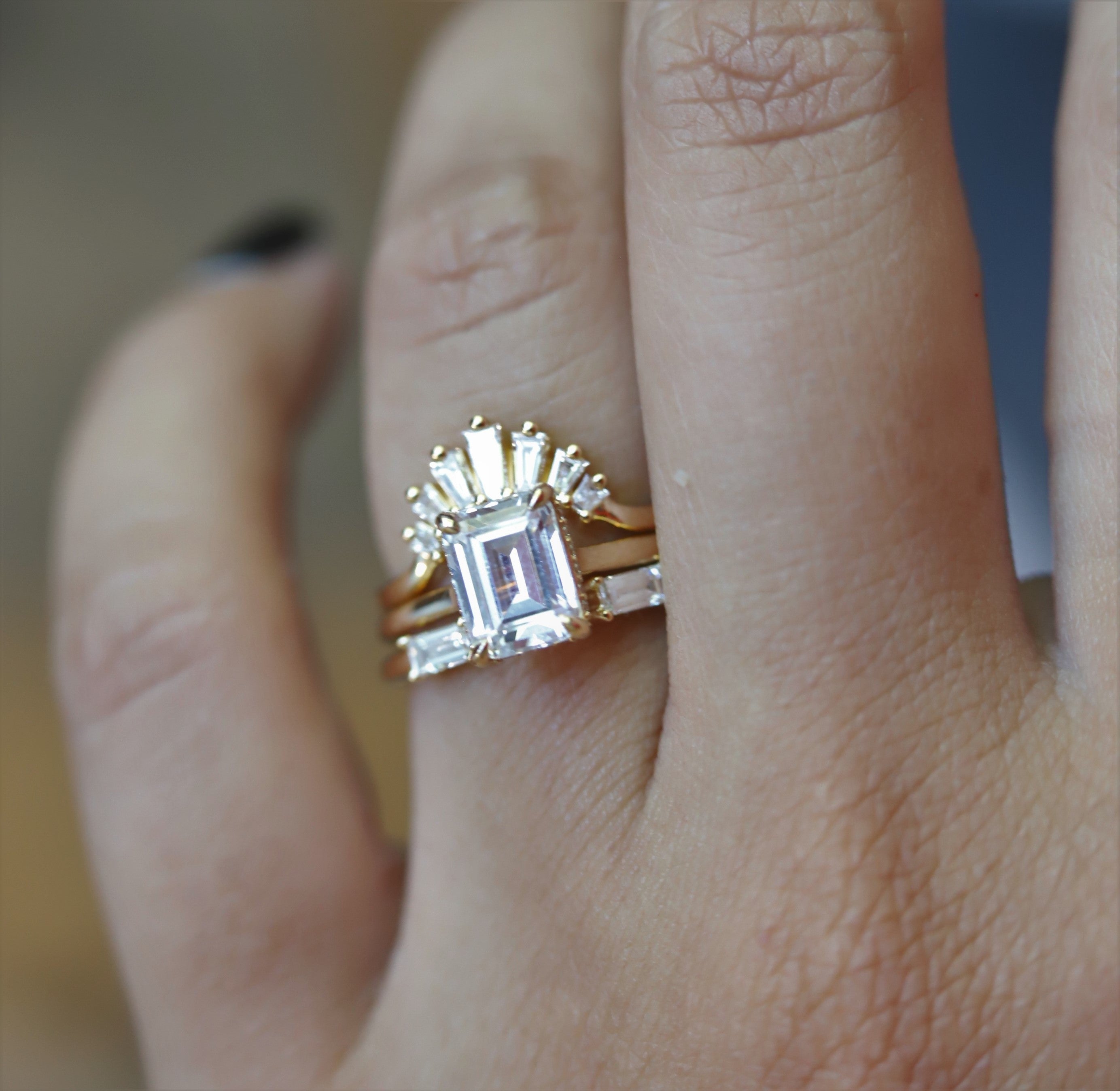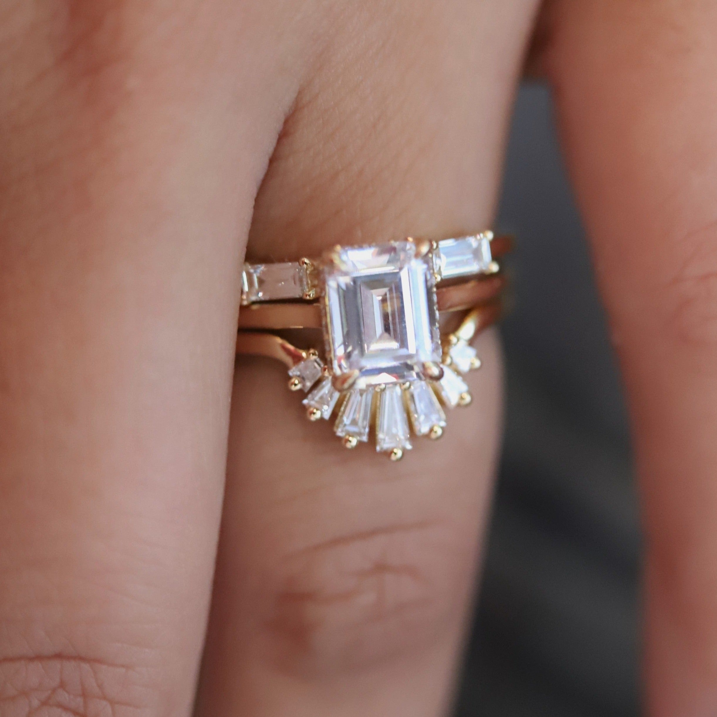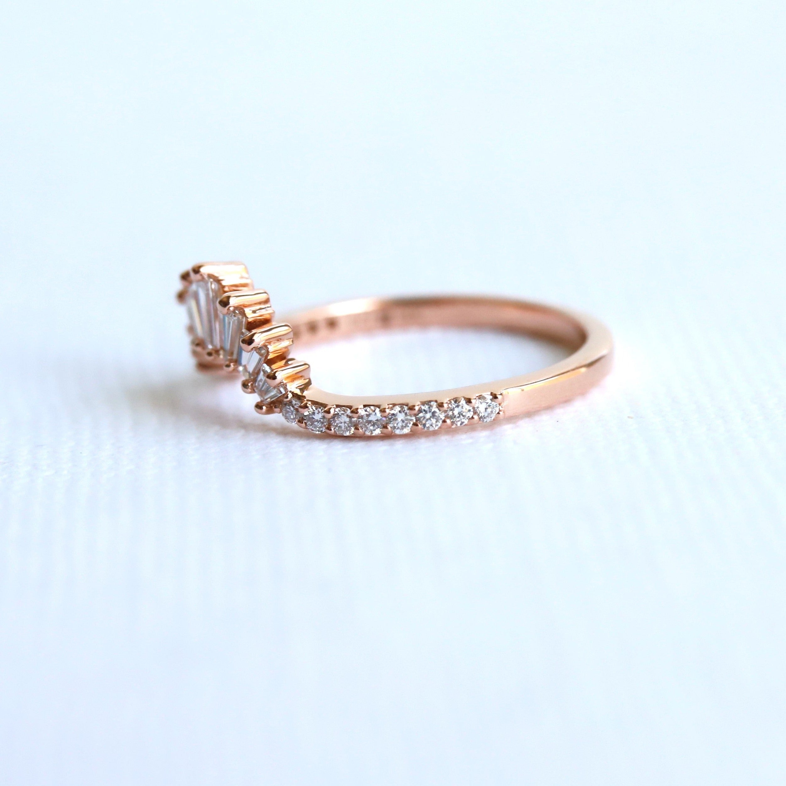 An art deco-inspired contour band, perfect for an emerald-shaped engagement ring.