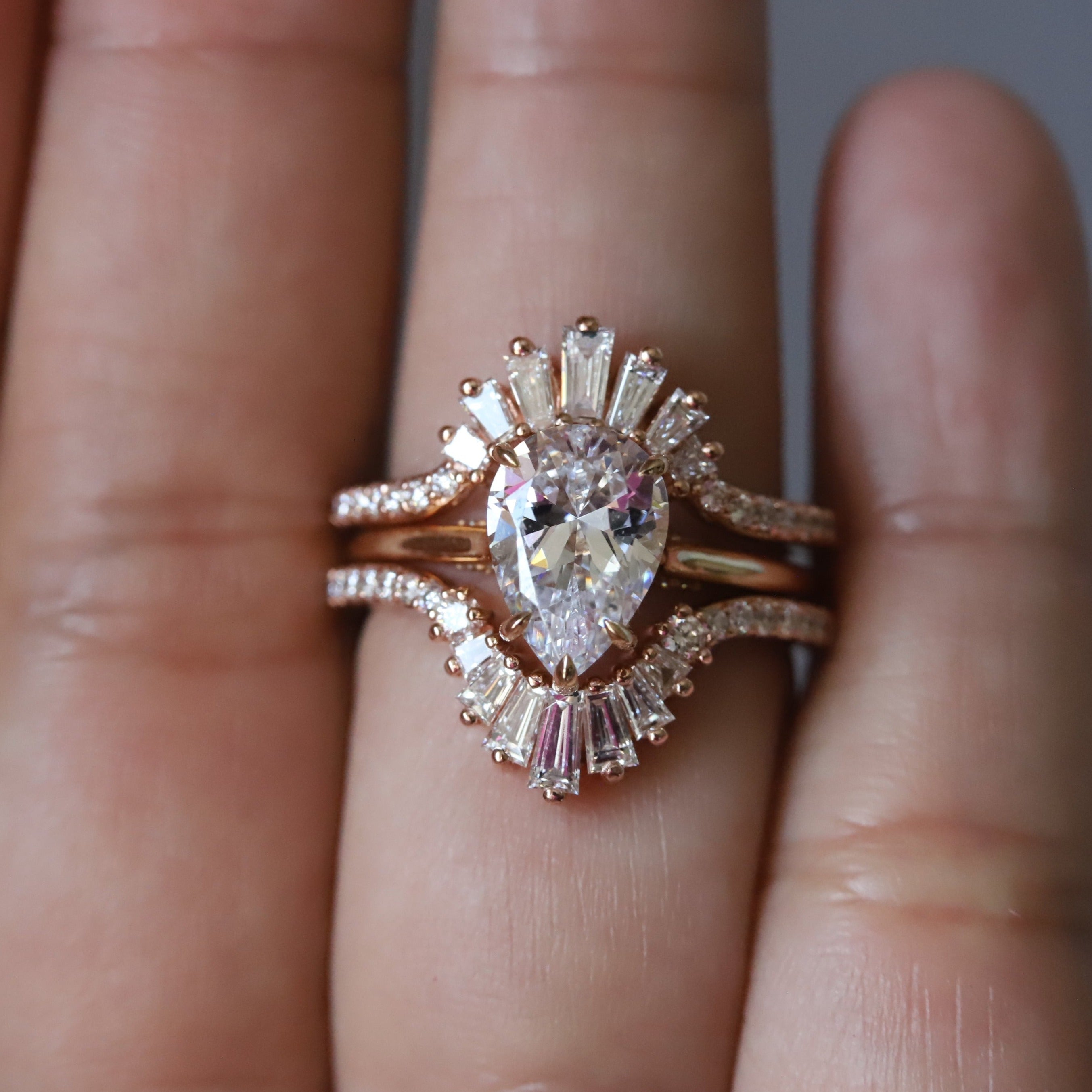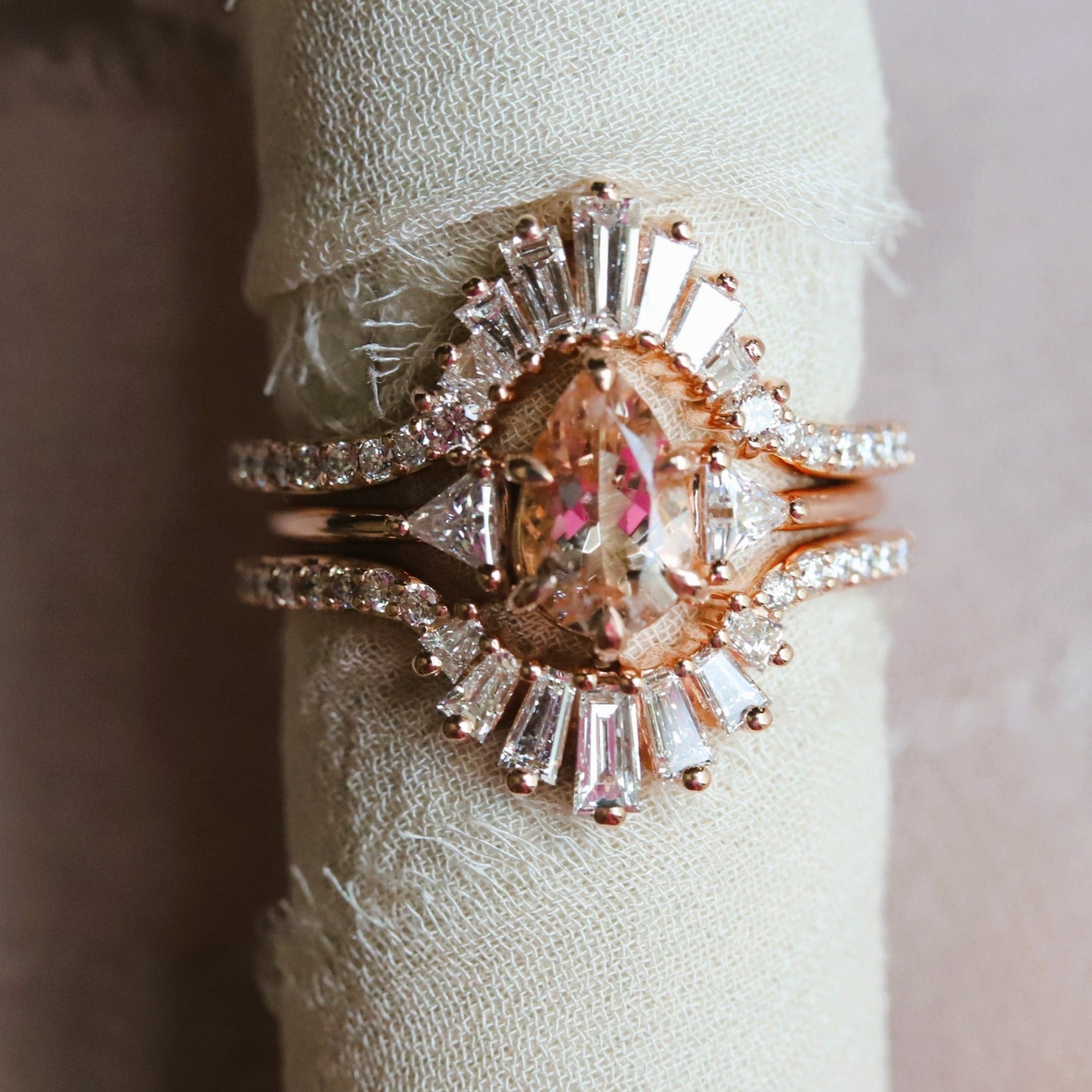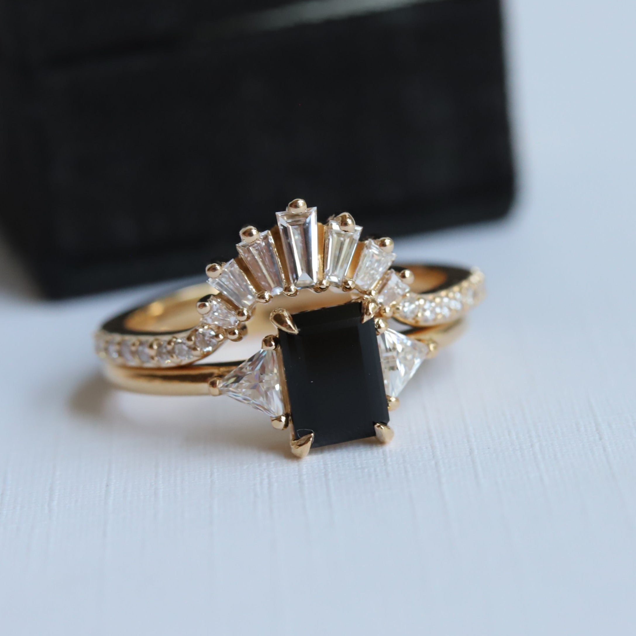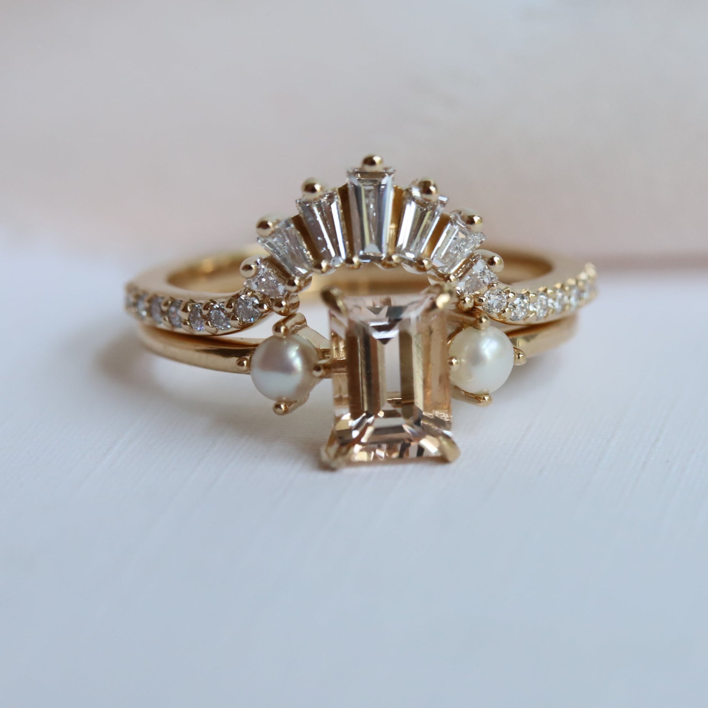 An art deco-inspired contour band, perfect for an emerald-shaped engagement ring.