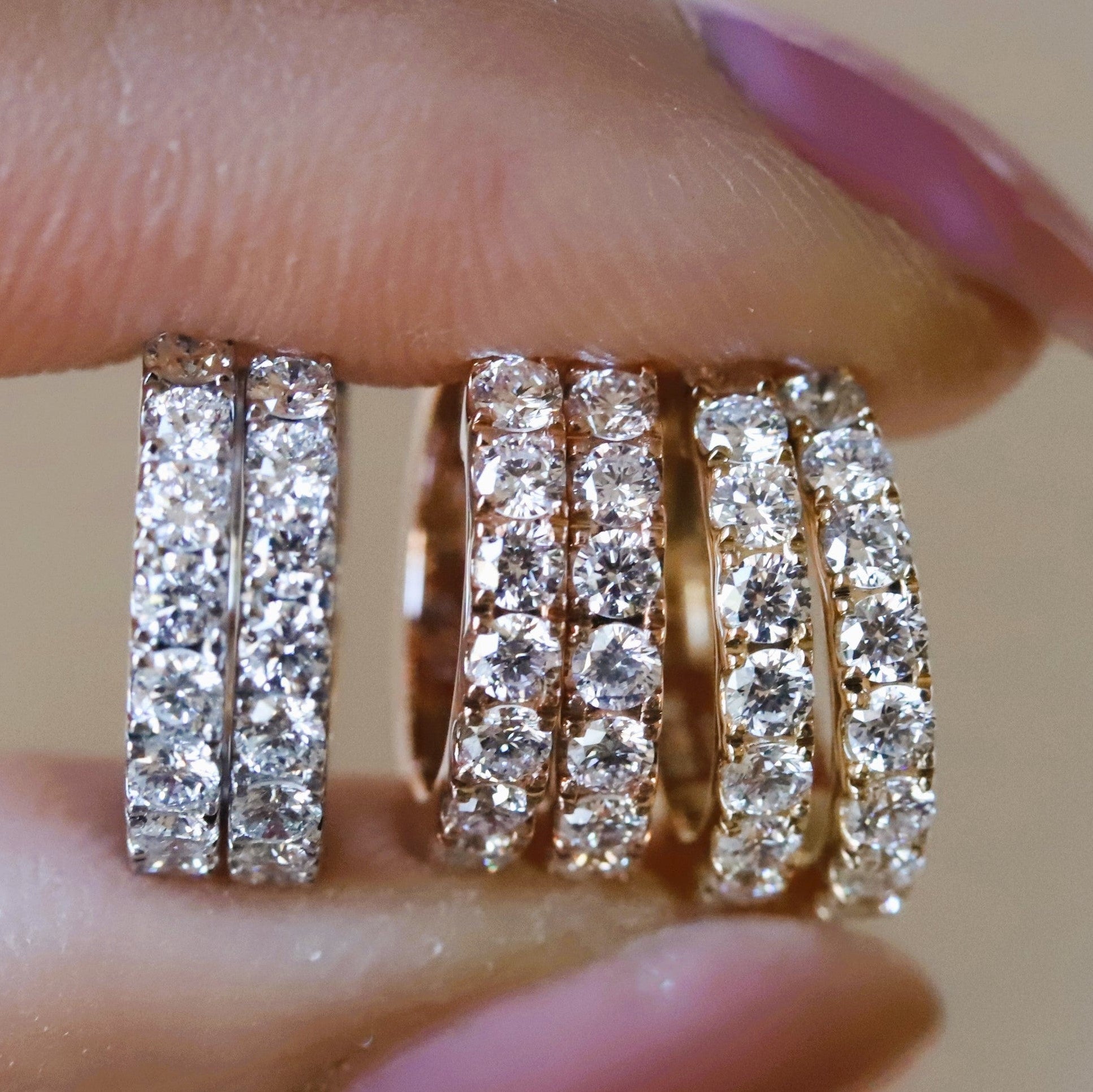 Elevate your everyday jewelry collection with these expertly crafted 14K gold huggie hoops. Each earring holds 0.3 carats of brilliant diamonds or lab-grown stones, delivering 0.6 total carats of refined sparkle. The 12mm hinged design sits close to the ear for a polished, secure fit that works seamlessly from desk to dinner. Made to order, these earrings are built for those who demand both quality and practicality. A versatile staple that complements any wardrobe and serves as a meaningful gift for the discerning jewelry lover.