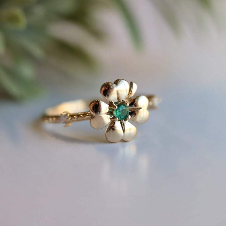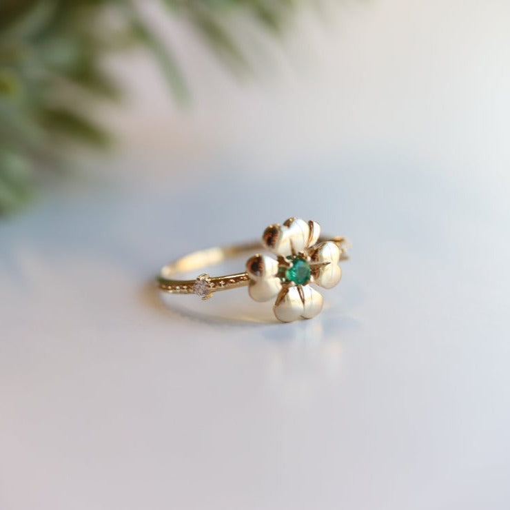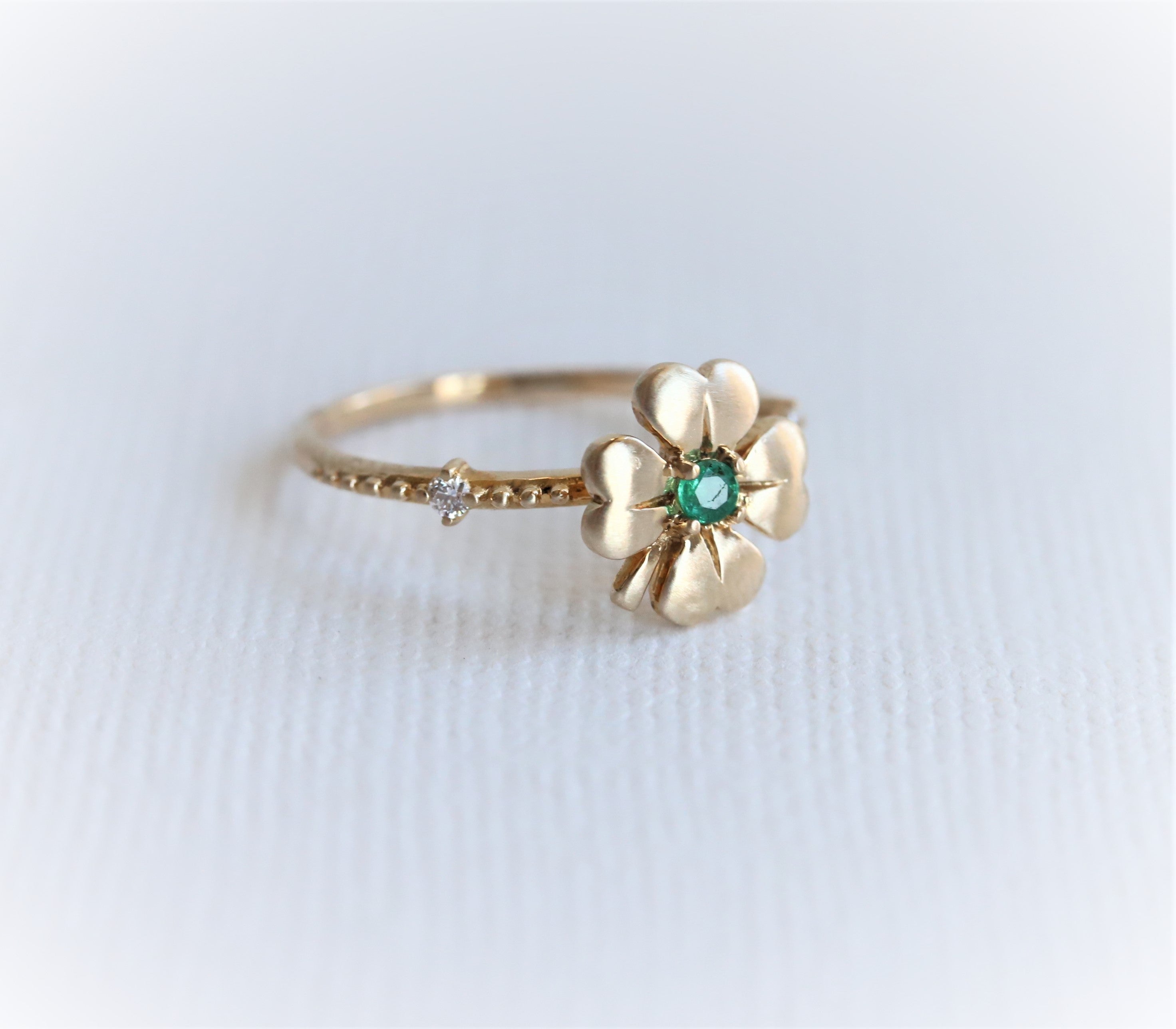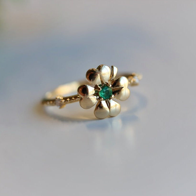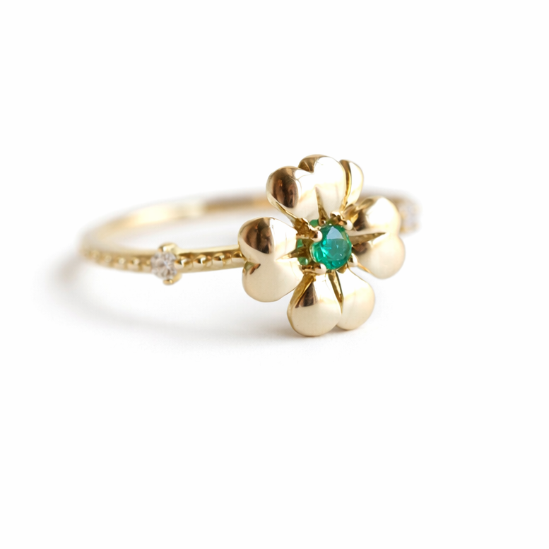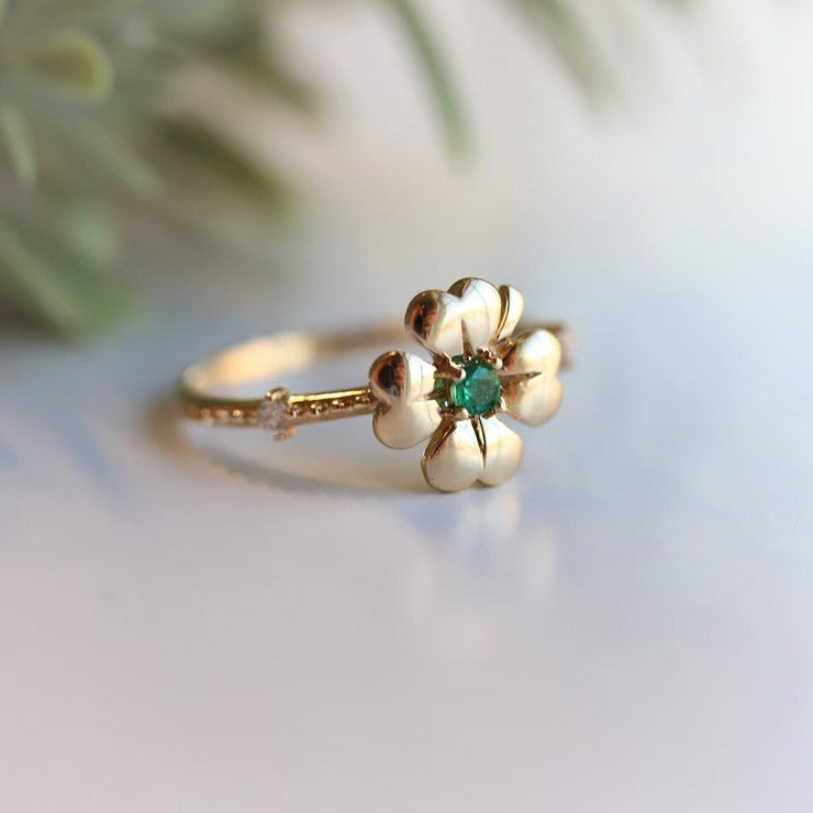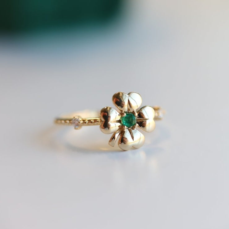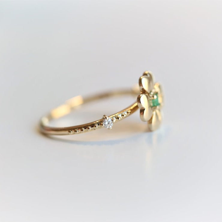 Four Leaf Clover Emerald and Diamond Stacking Ring