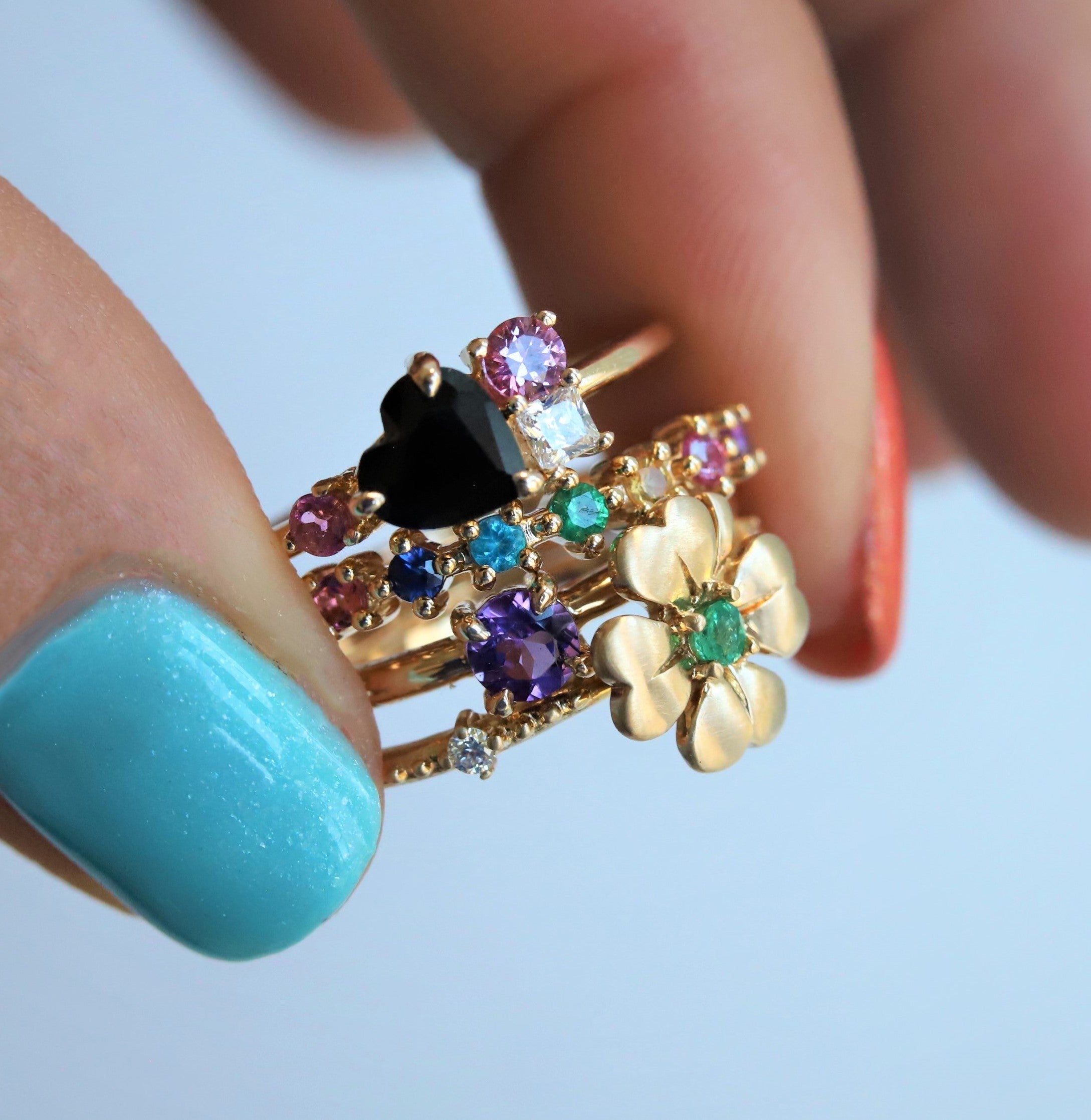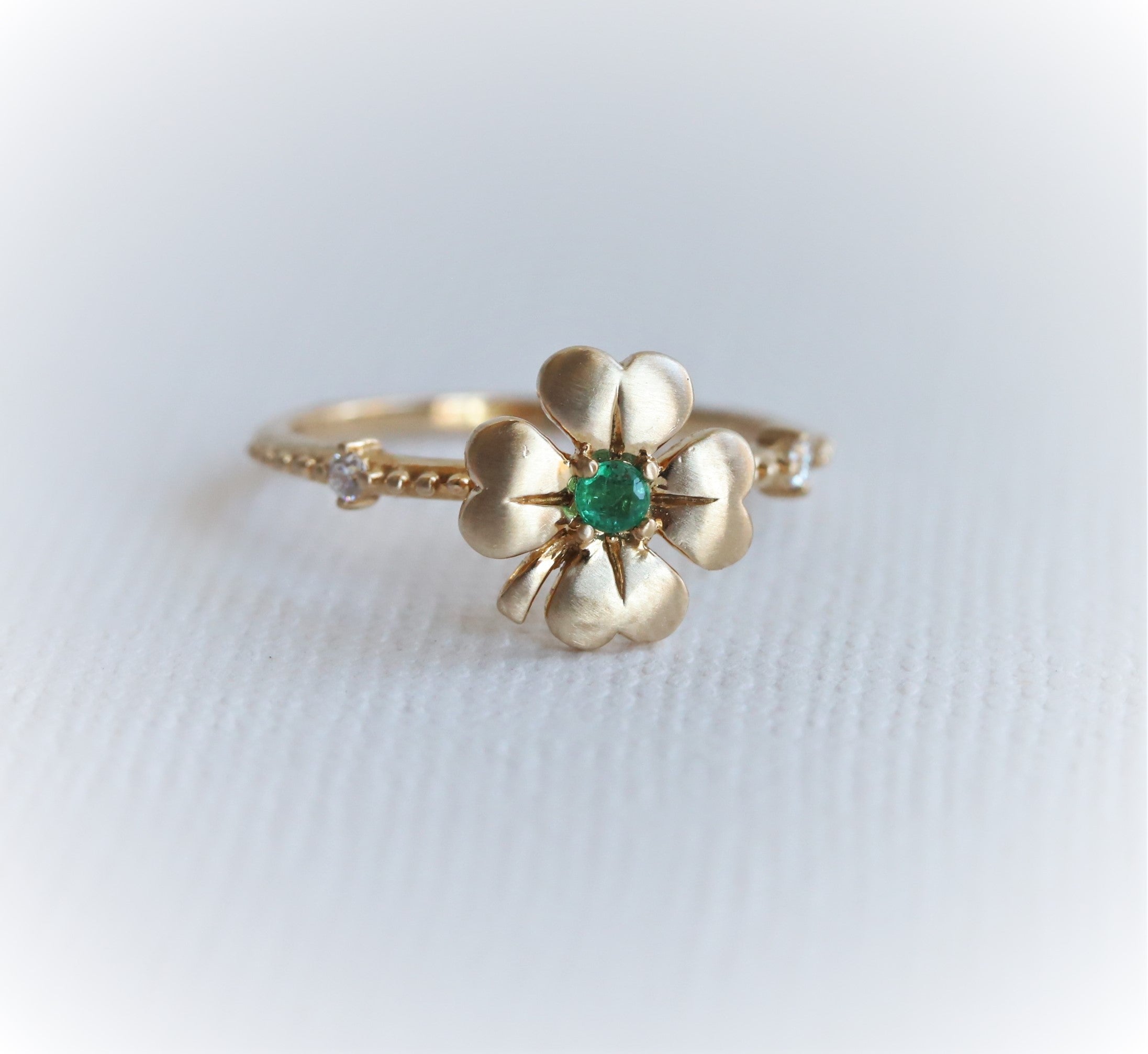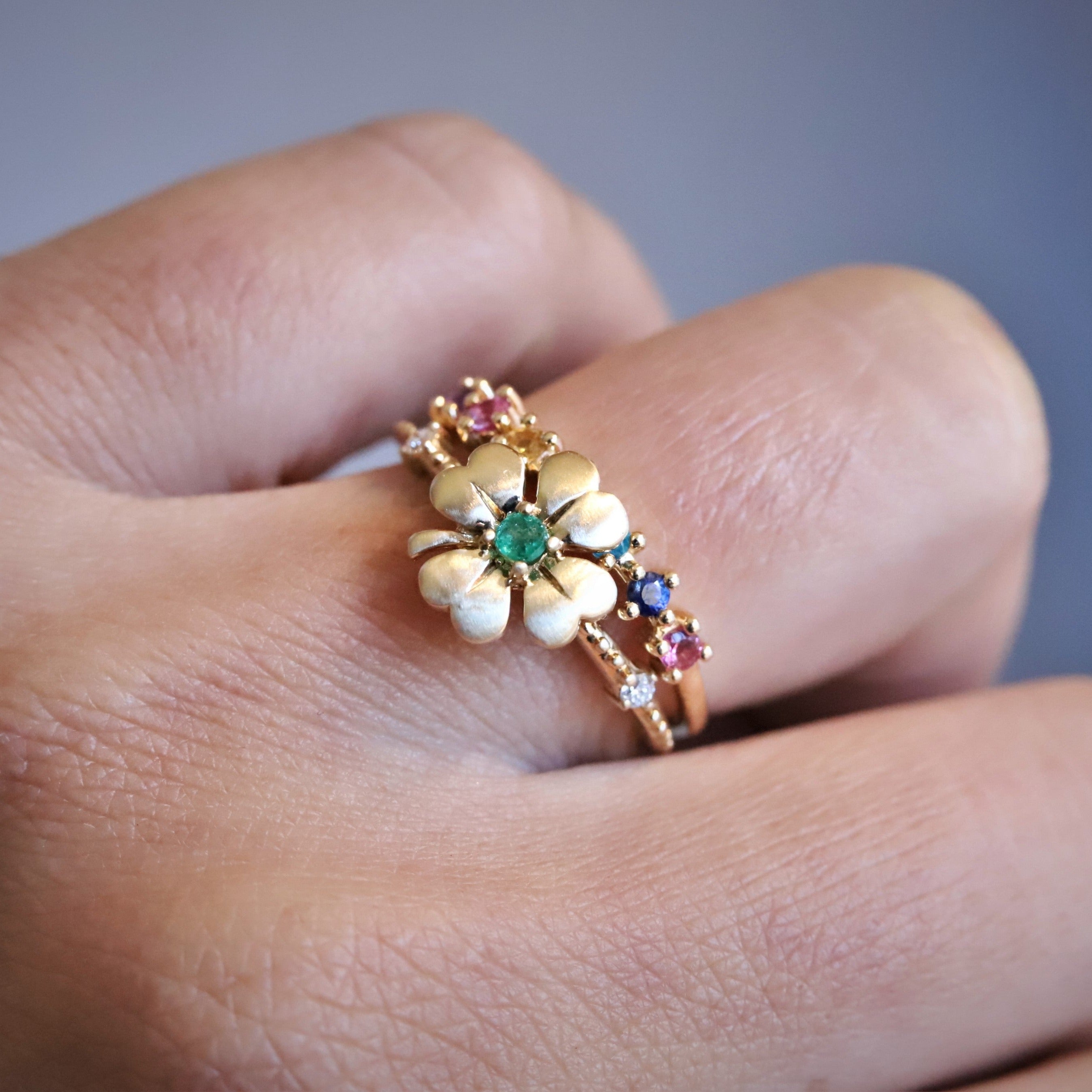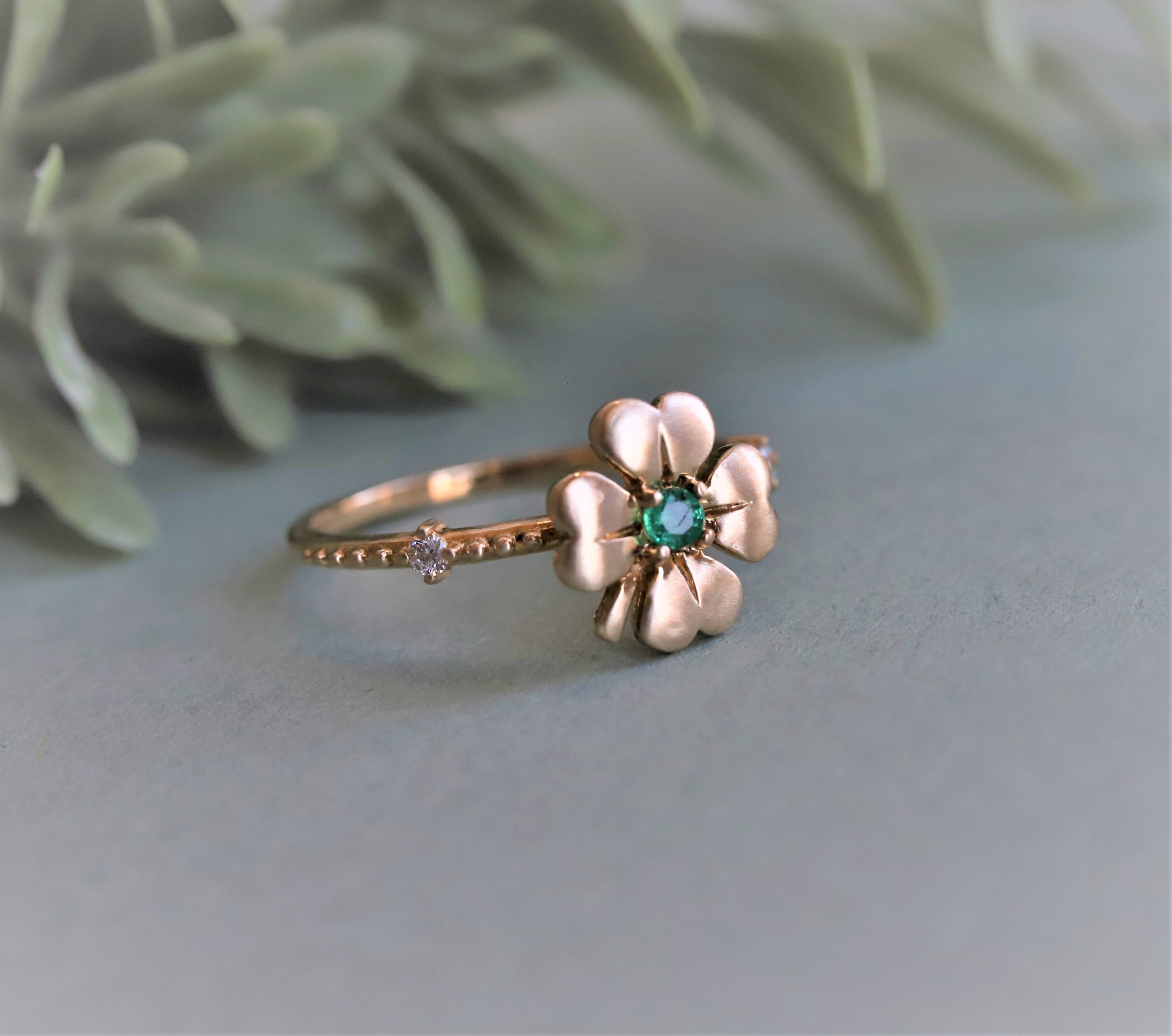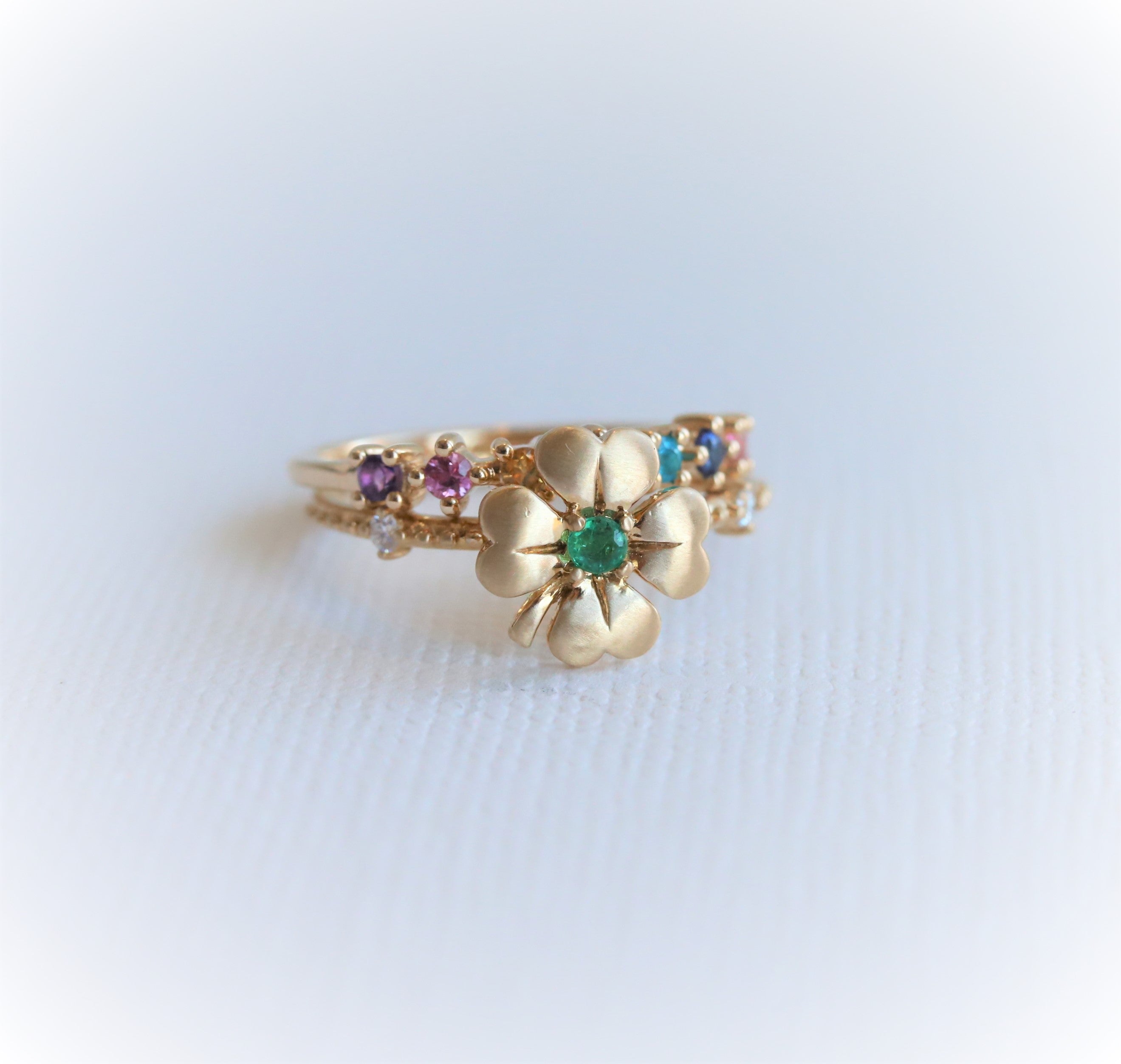 Four Leaf Clover Emerald and Diamond Stacking Ring