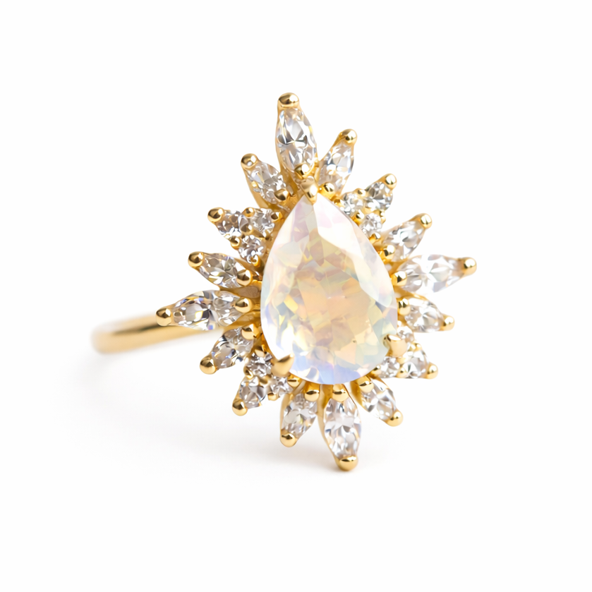 Lana | Pear Rainbow Moonstone Halo Ring
