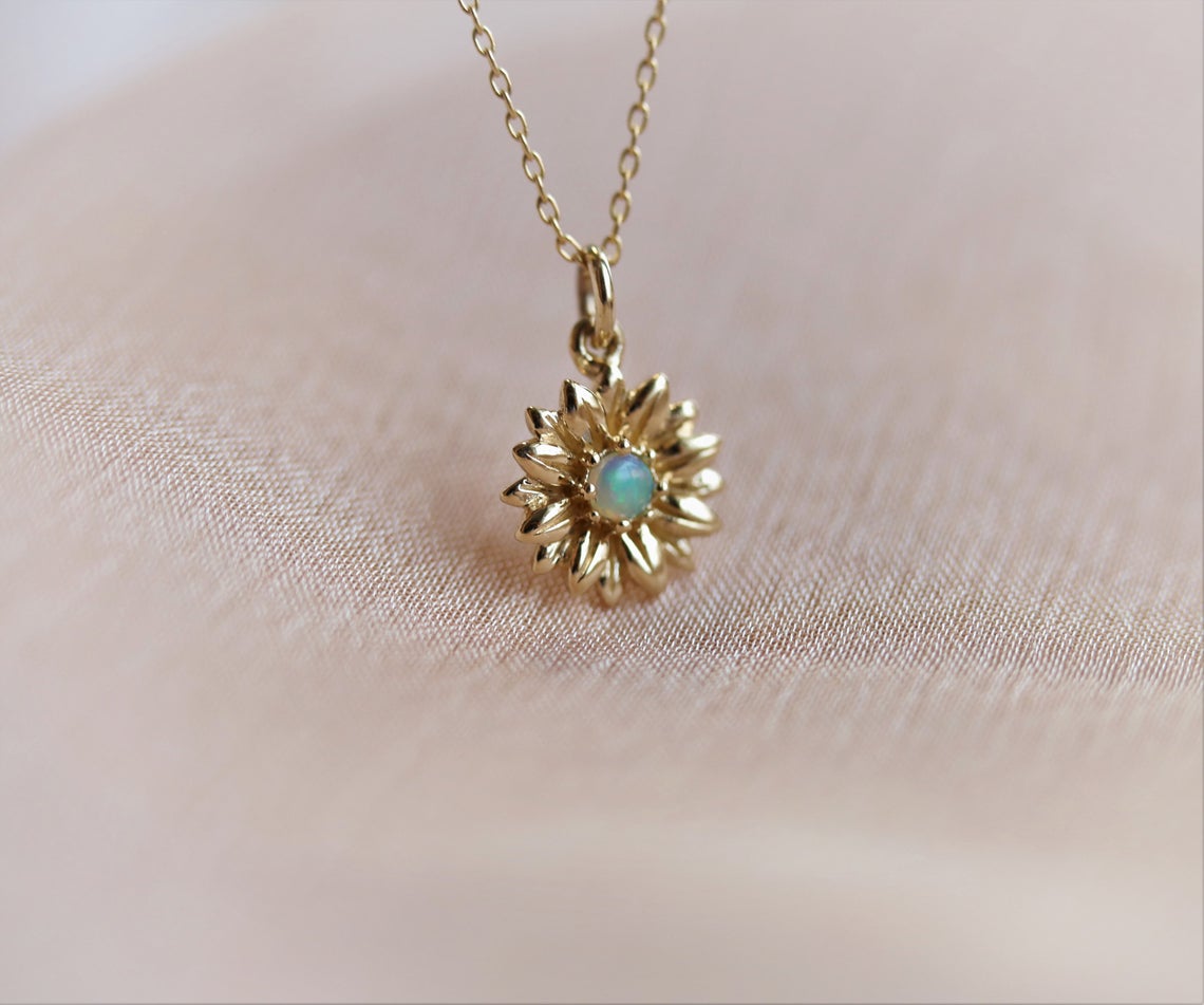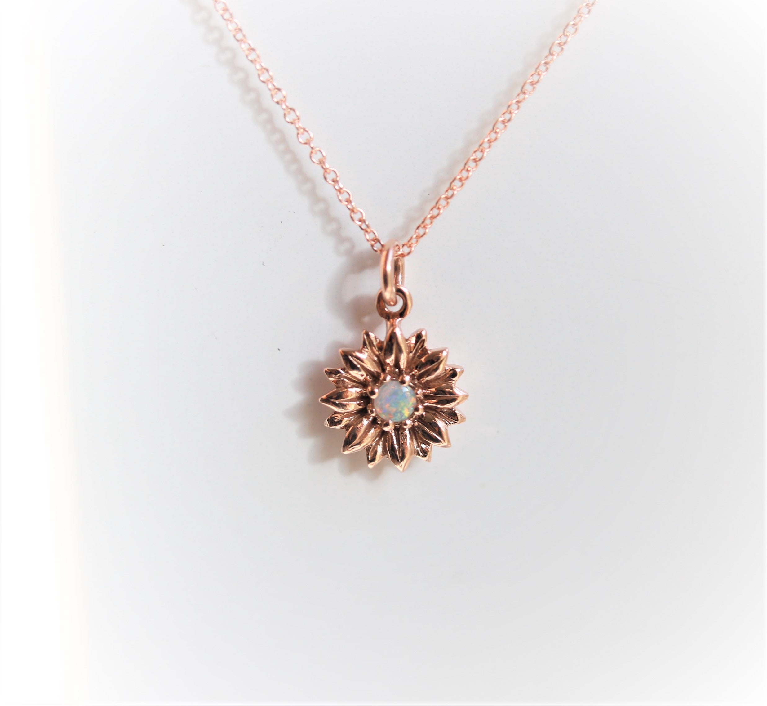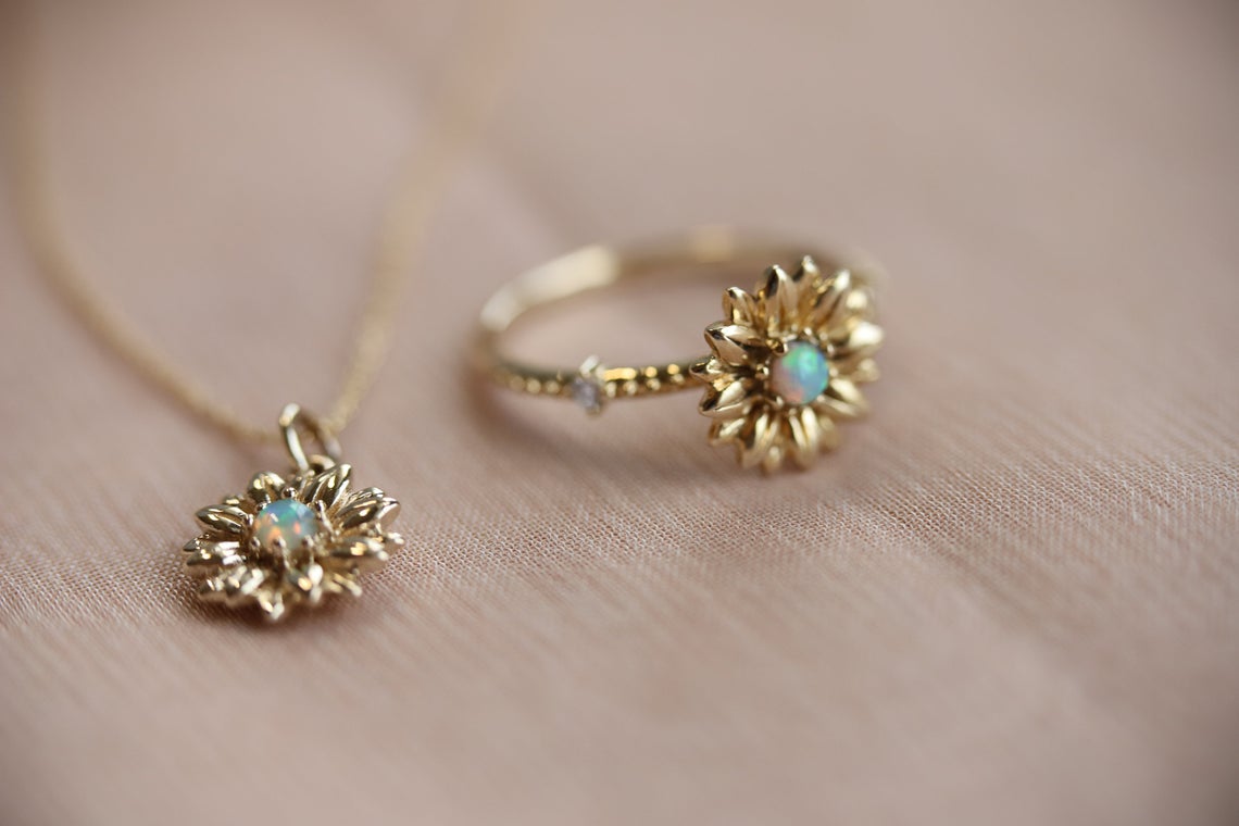 Inspired by the vibrancy of nature and the delicate petals of the sunflower—a timeless symbol of happiness and hope—the Sunflower Pendant celebrates joy, innocence, and inner strength. At its center, a luminous Australian opal glows with soft, natural fire.