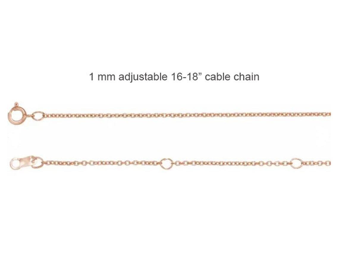 - Chain Type: Adjustable 1 mm cable chain, Length: 16-18 inches