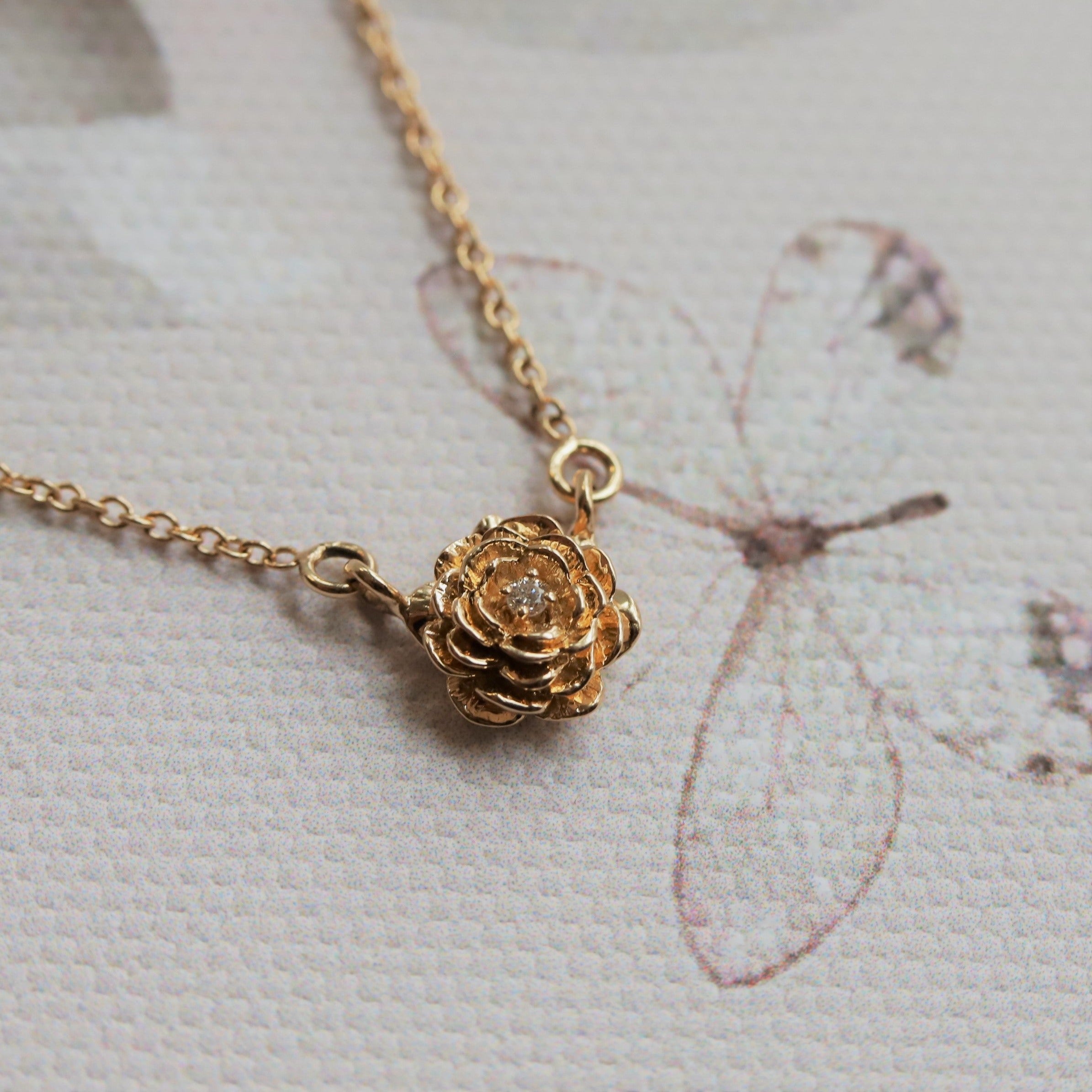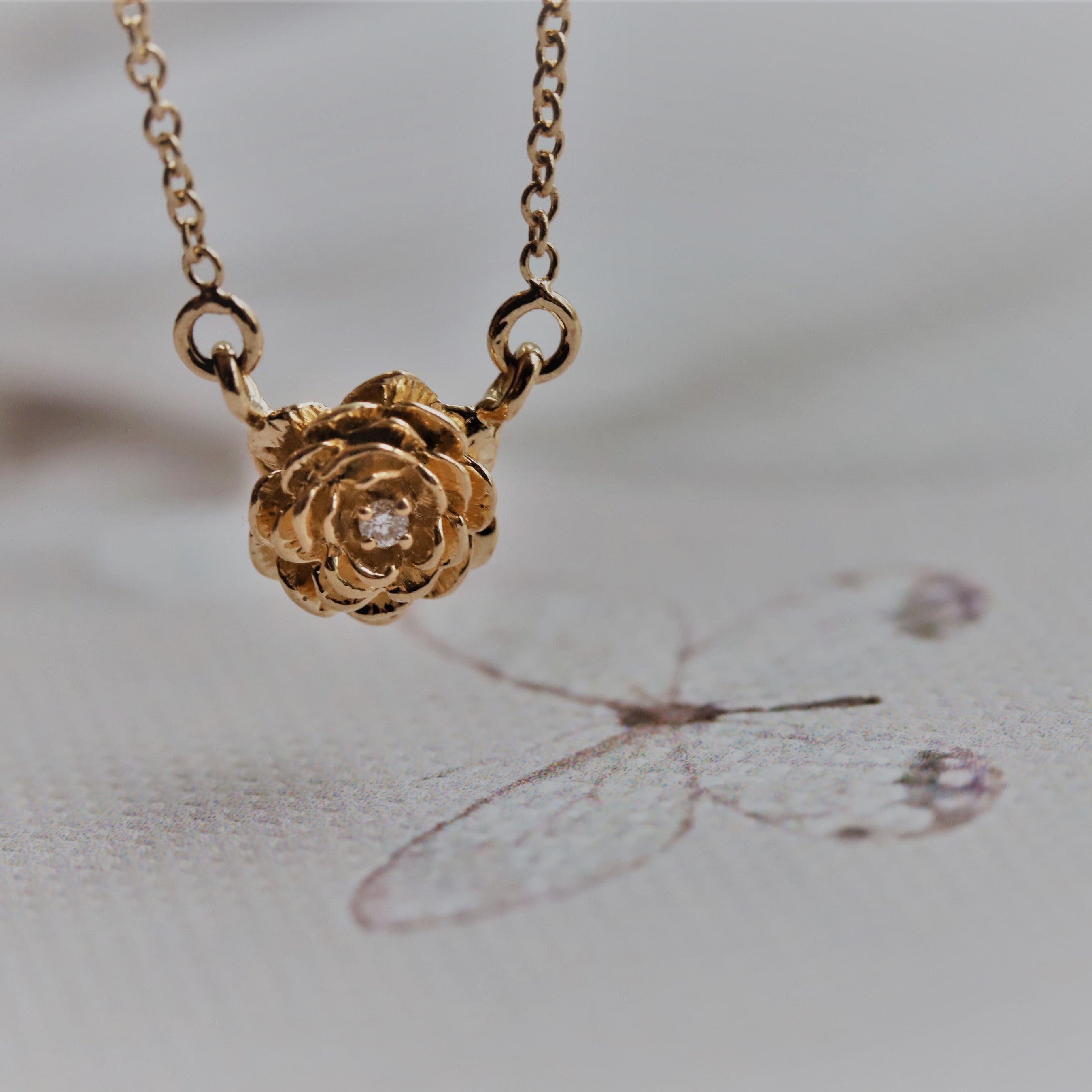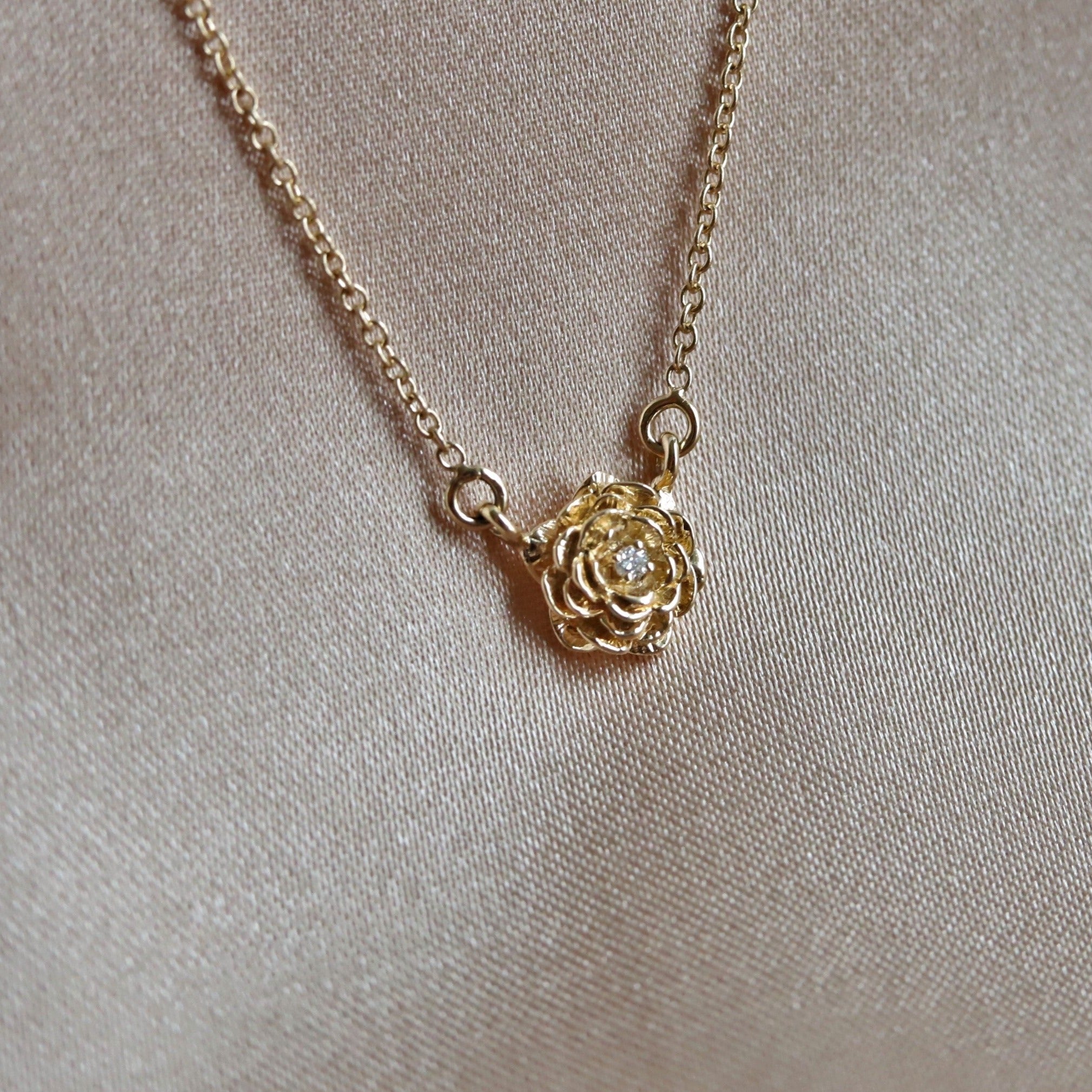 ROSE Necklace No.3 | 14K Rose With Diamond Necklace