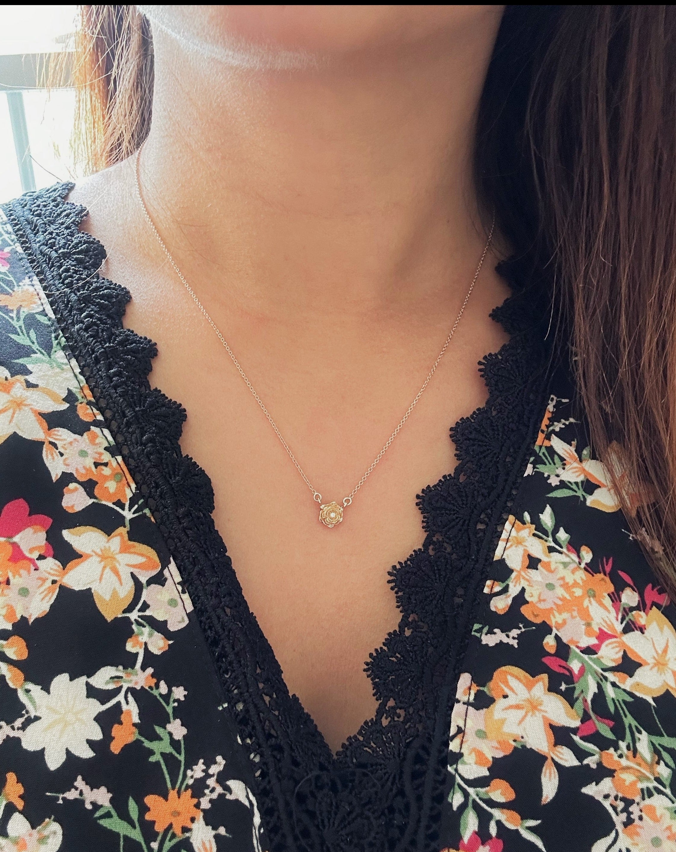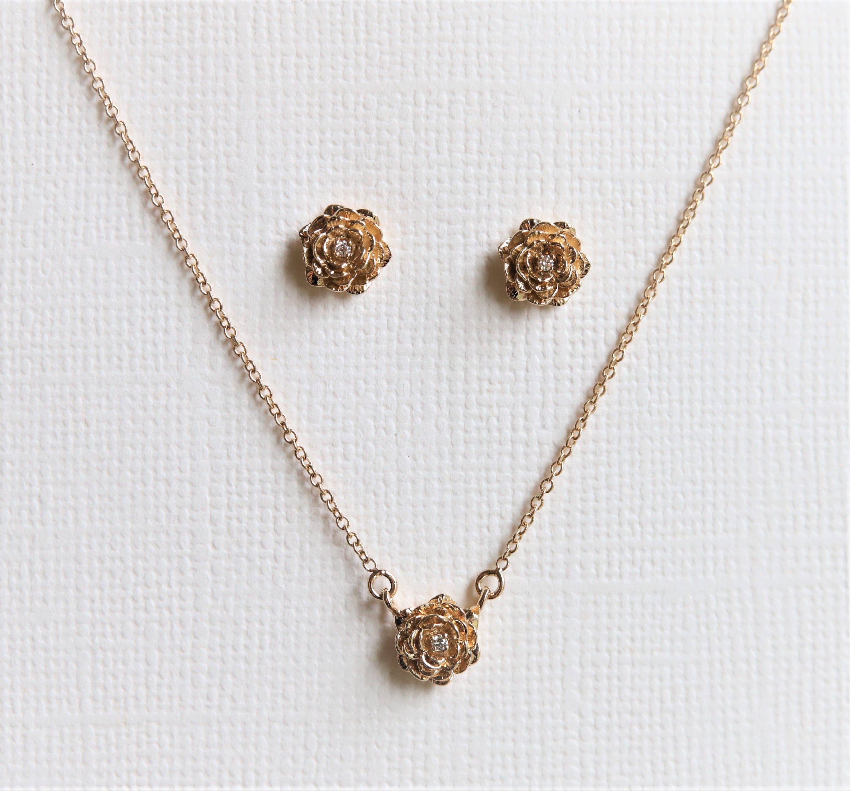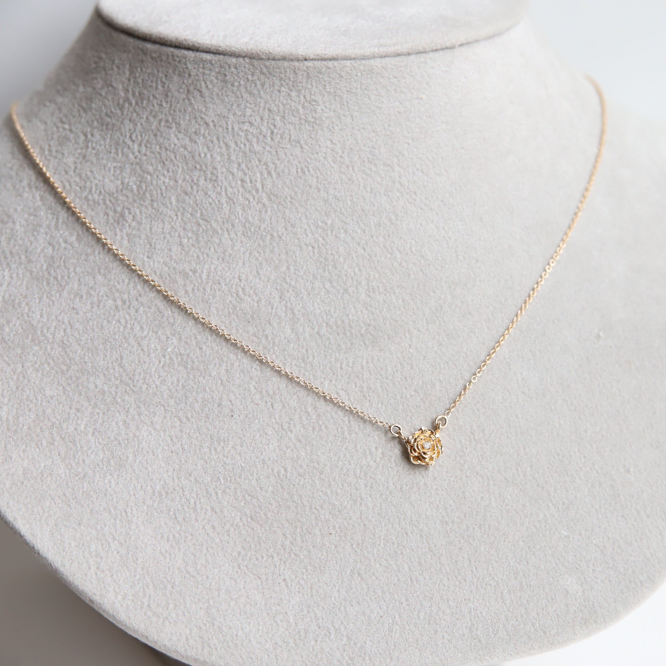 ROSE Necklace No.3 | 14K Rose With Diamond Necklace