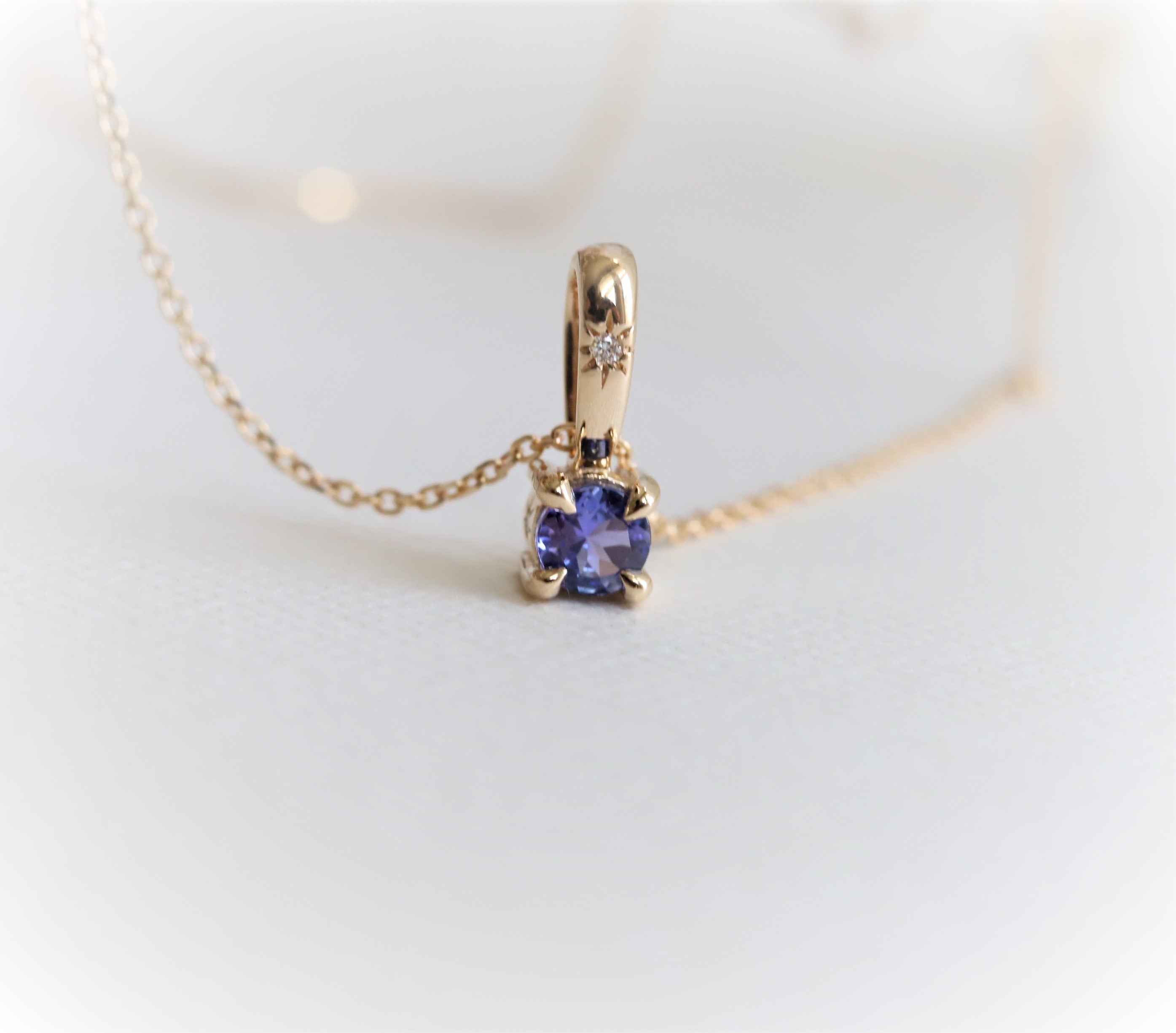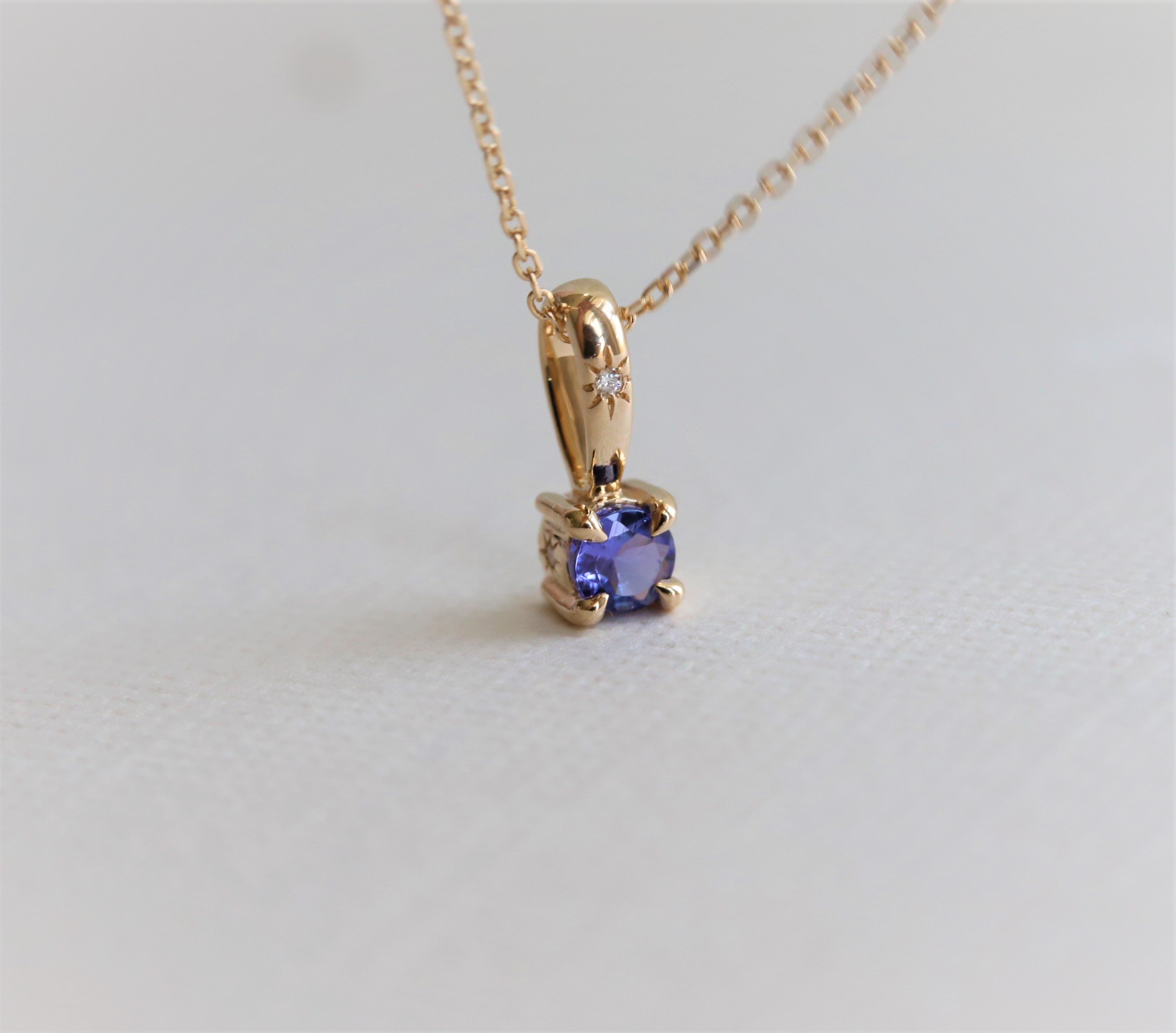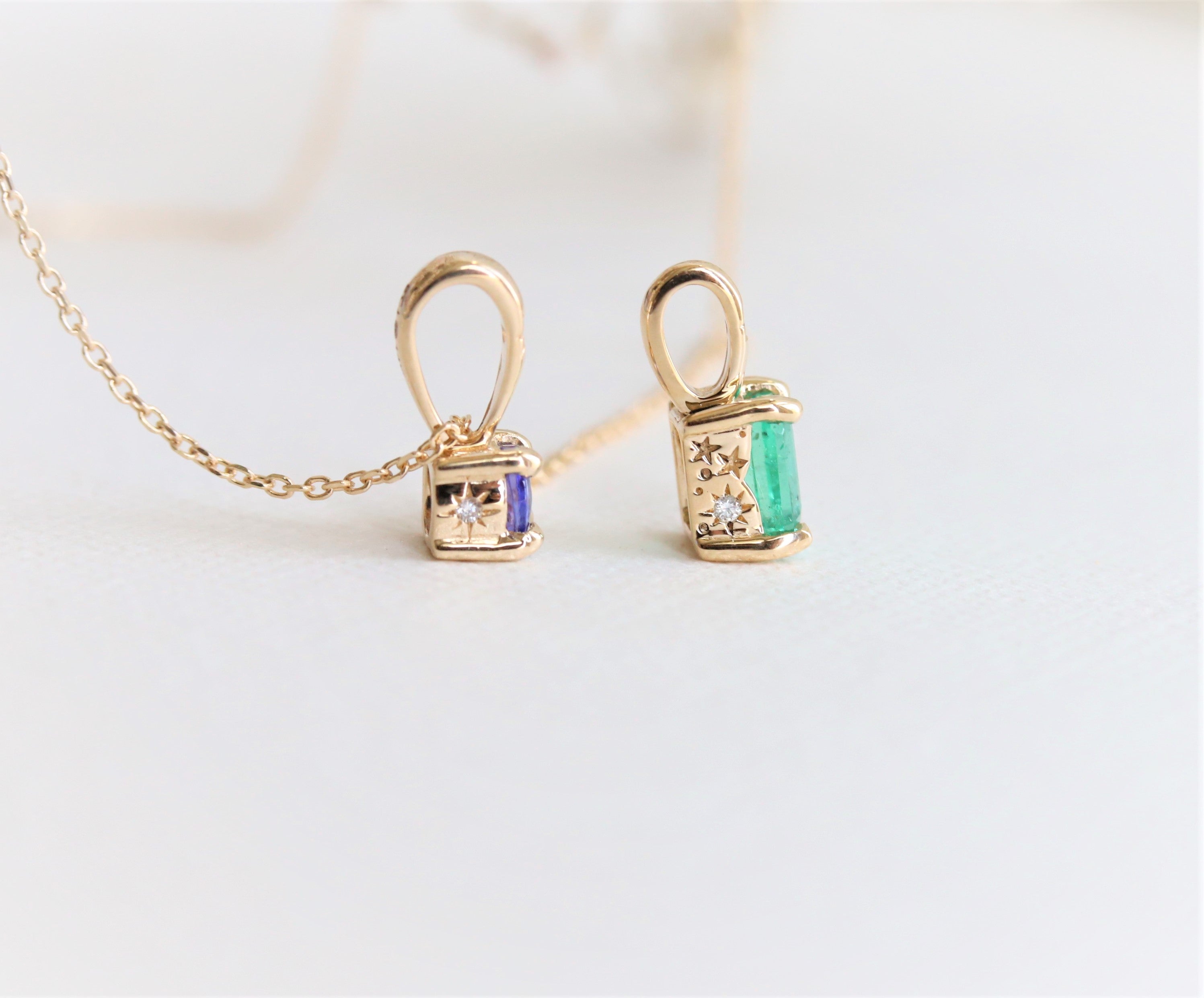Updated & sparkling like the stars it’s named after, the new Stella Necklace features a round-cut birthstone of your choice held in place with 4 claw prongs. Dangling from a hoop featuring a star engraving & a diamond in the center. Three diamonds adorn the sides of the setting along with star engravings making it a celestial dream. Choose your birthstone, metal type to make the necklace fit your style perfectly.