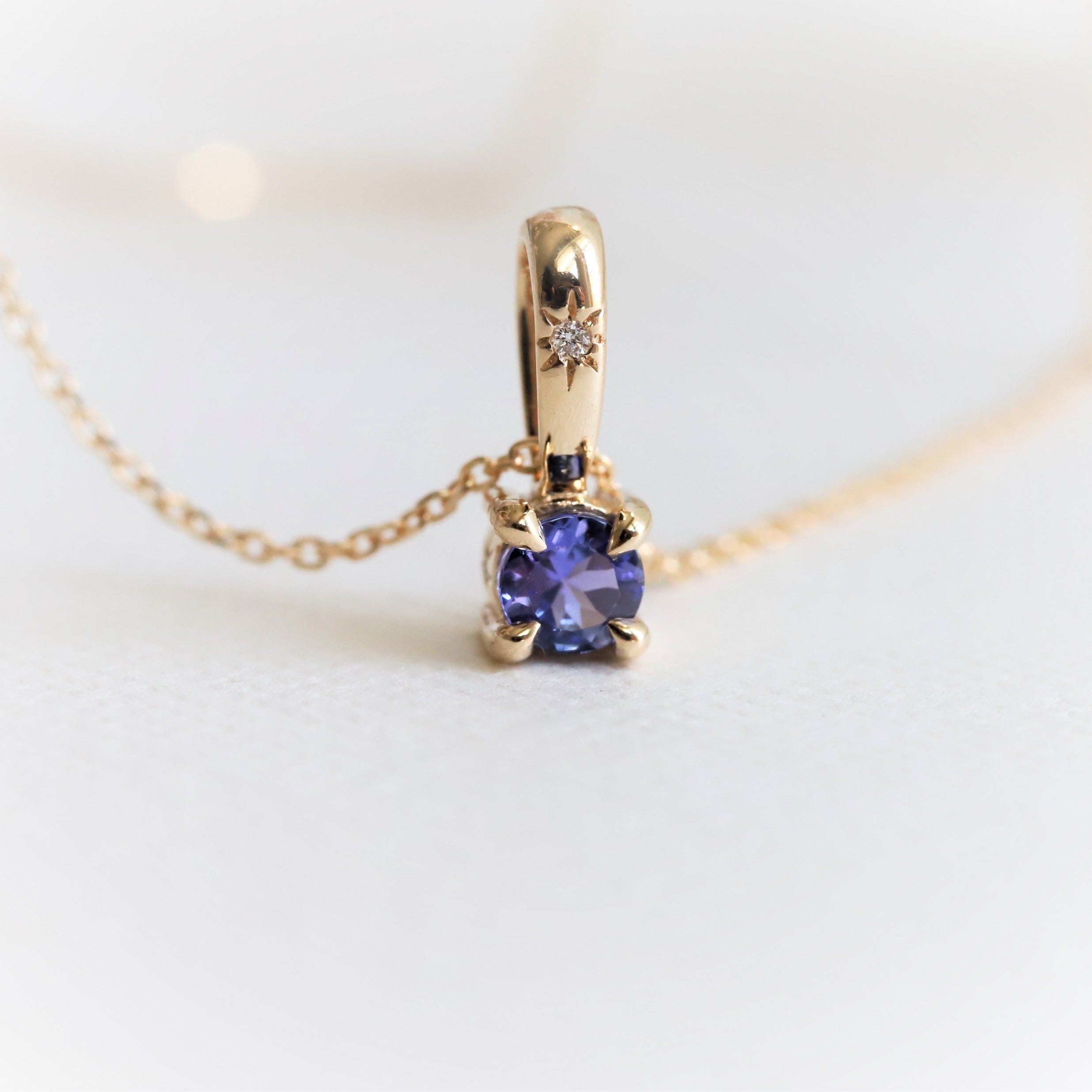 Stella | 4 mm Round Cut Birthstone & Diamond Hidden Star Necklace