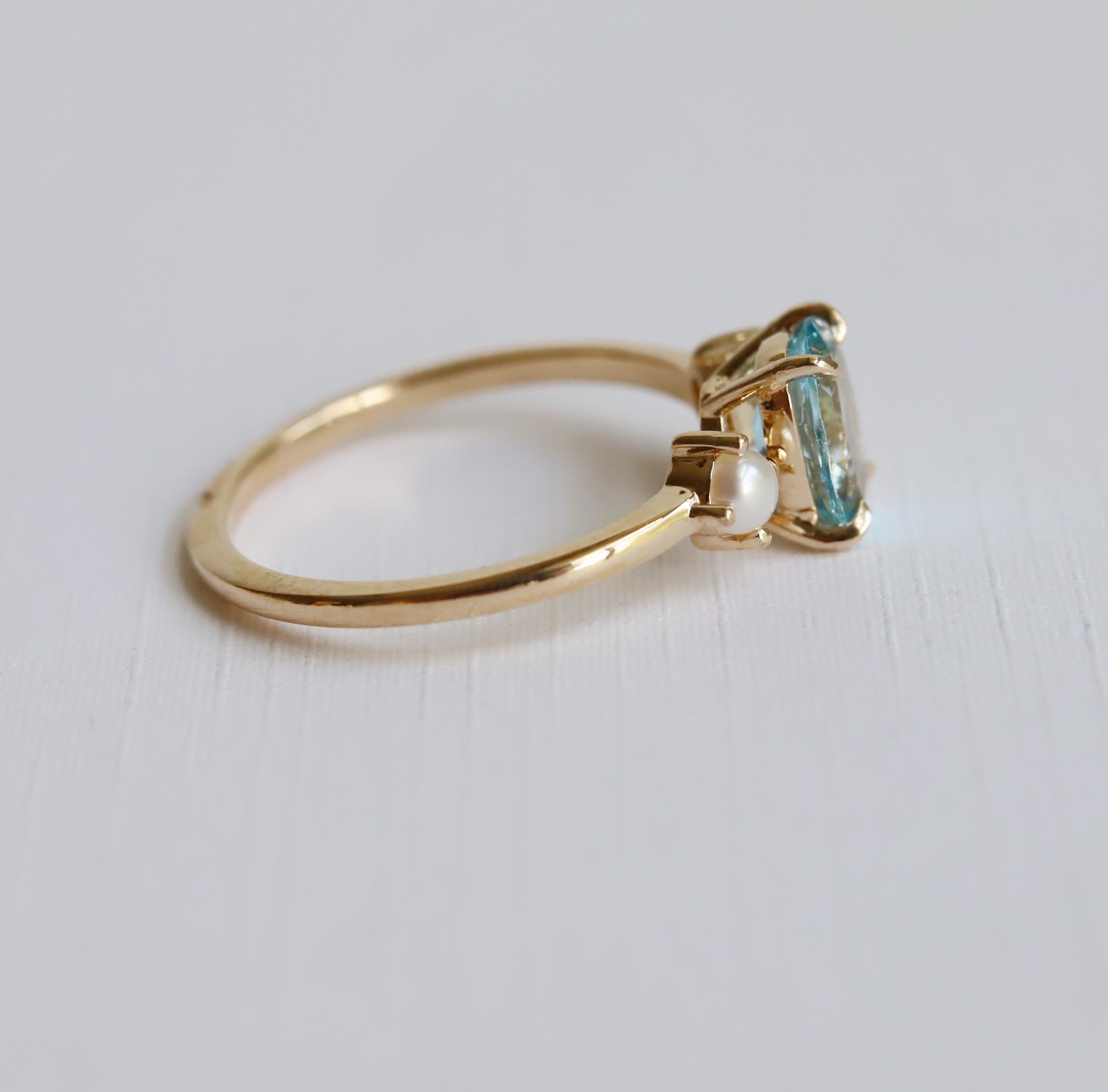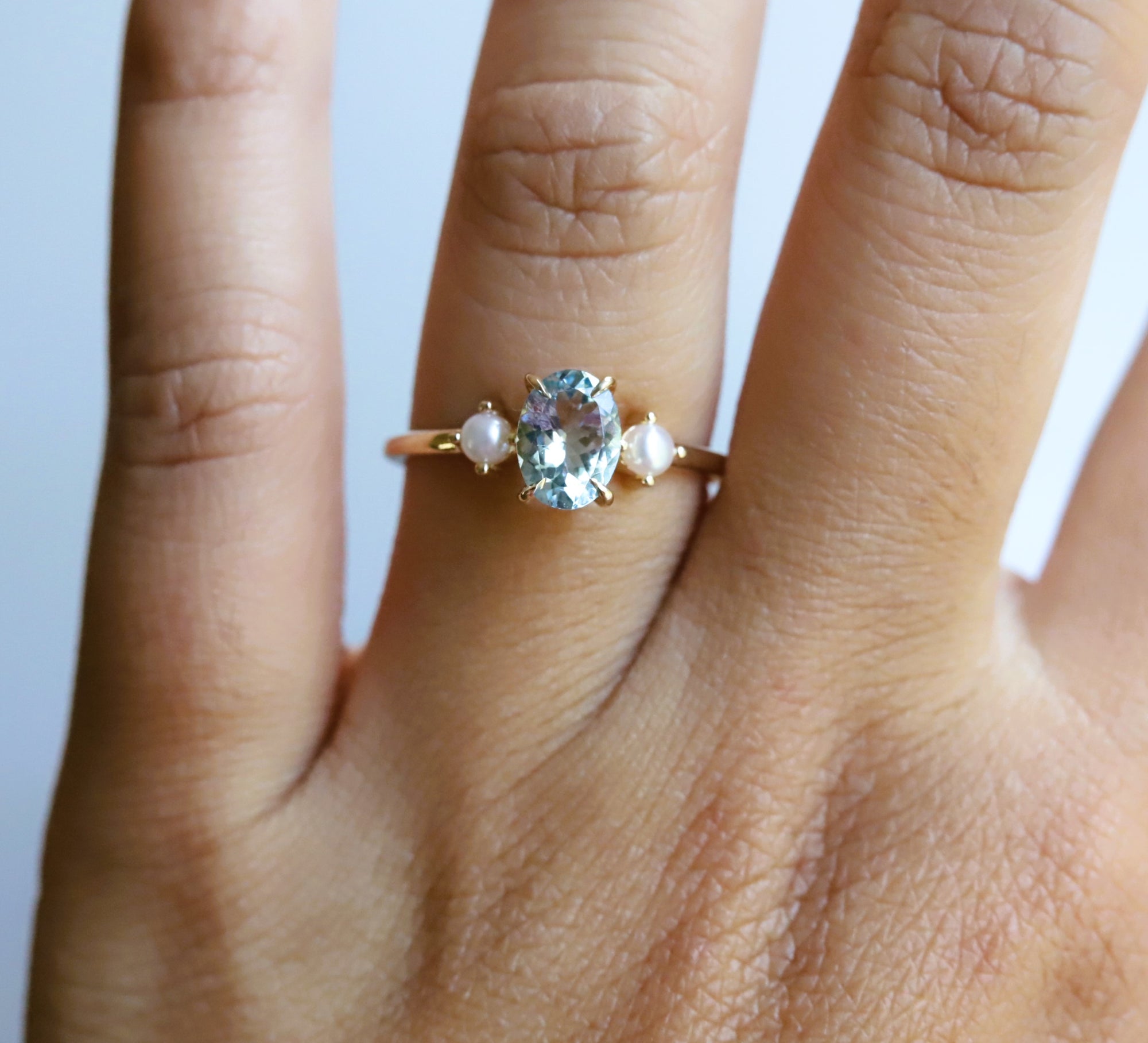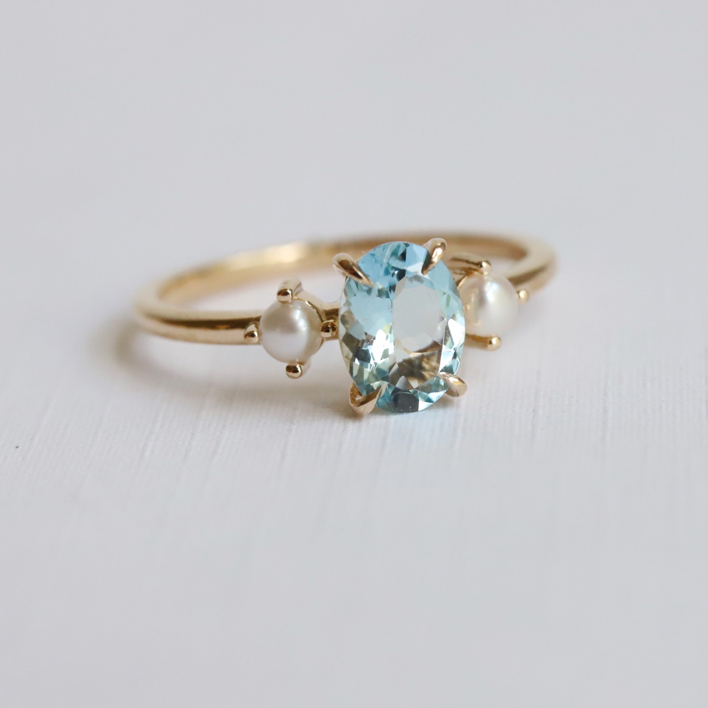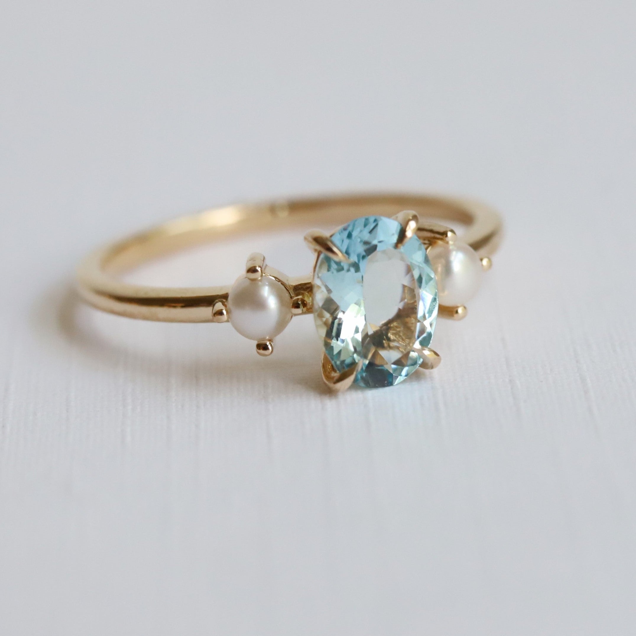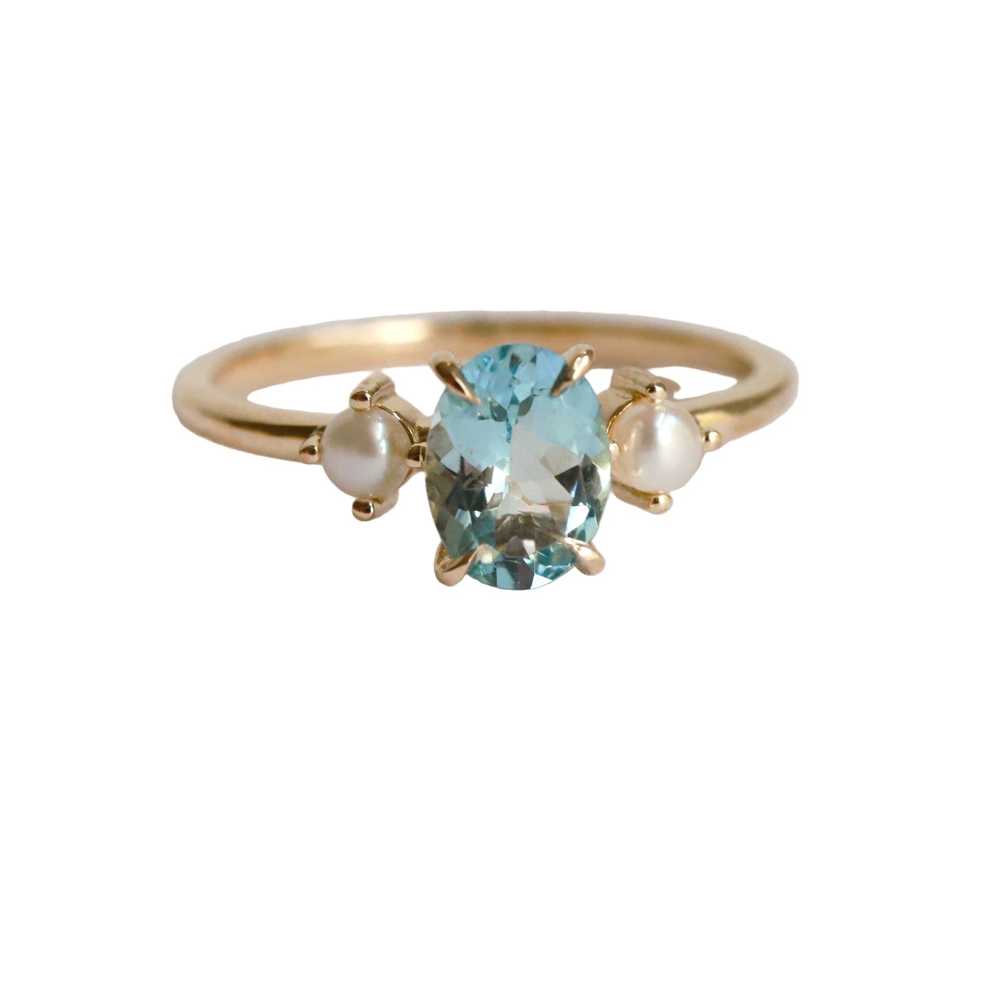 EVA | 1 ct. Oval Aquamarine and Pearl Ring