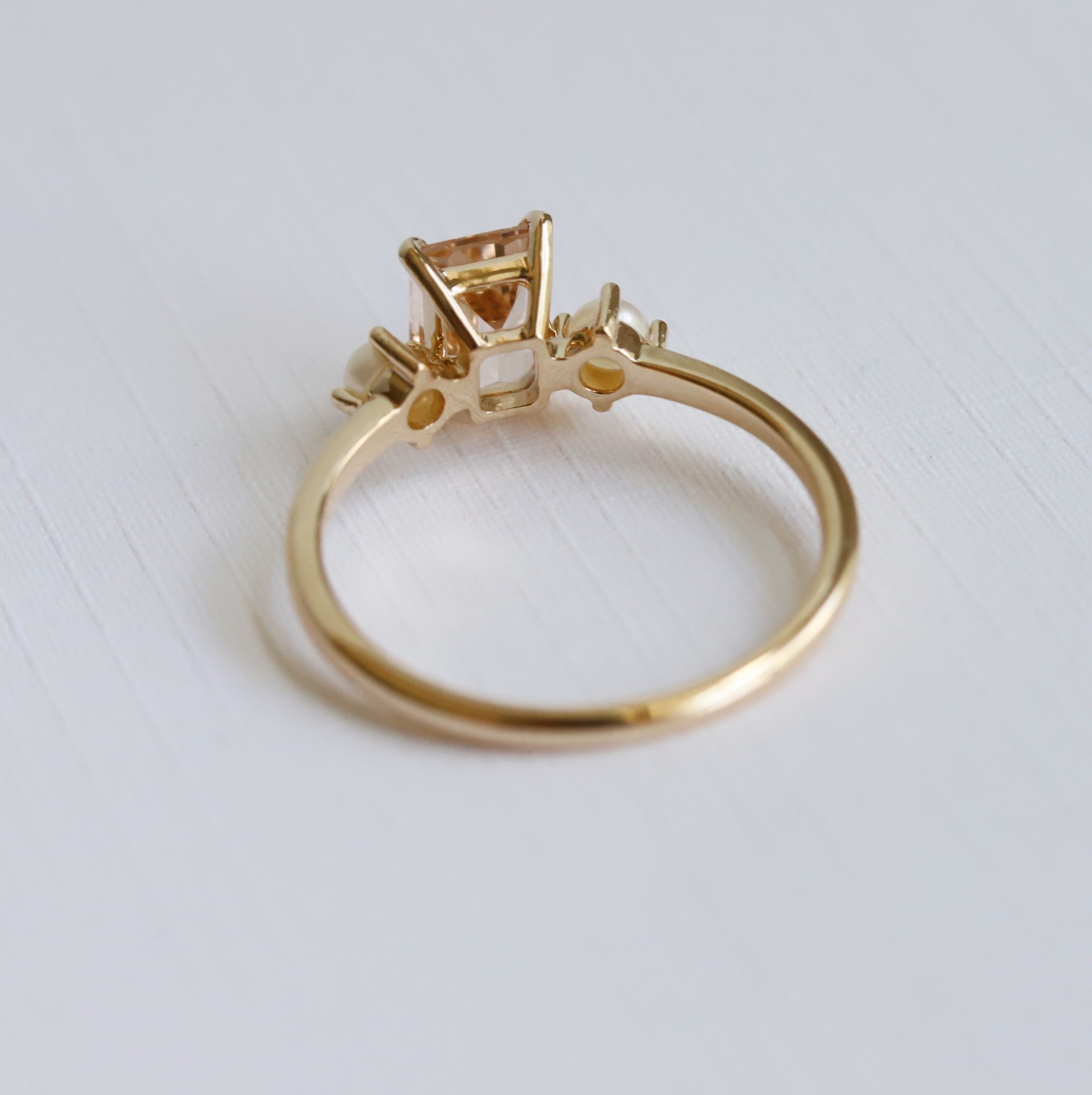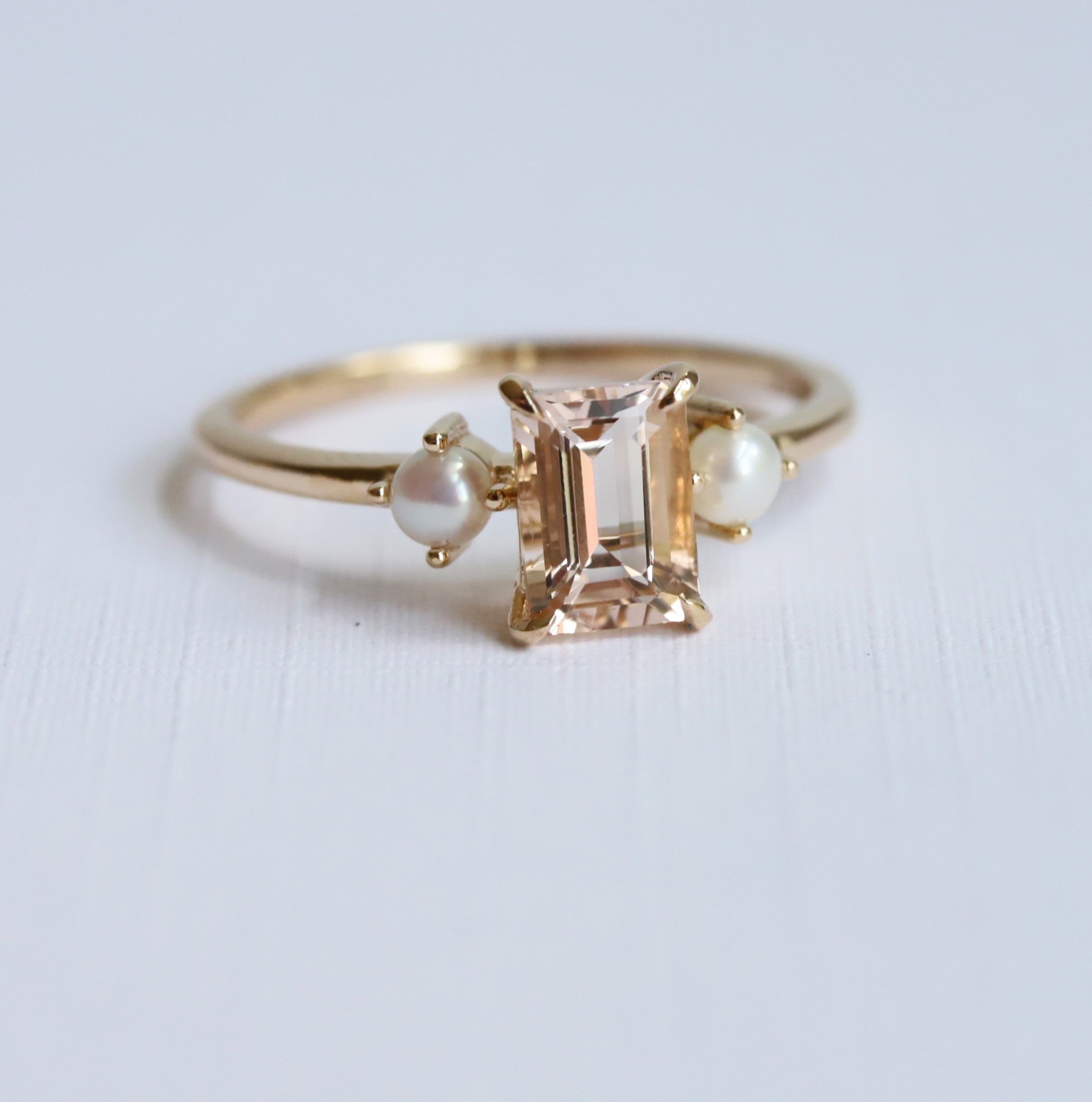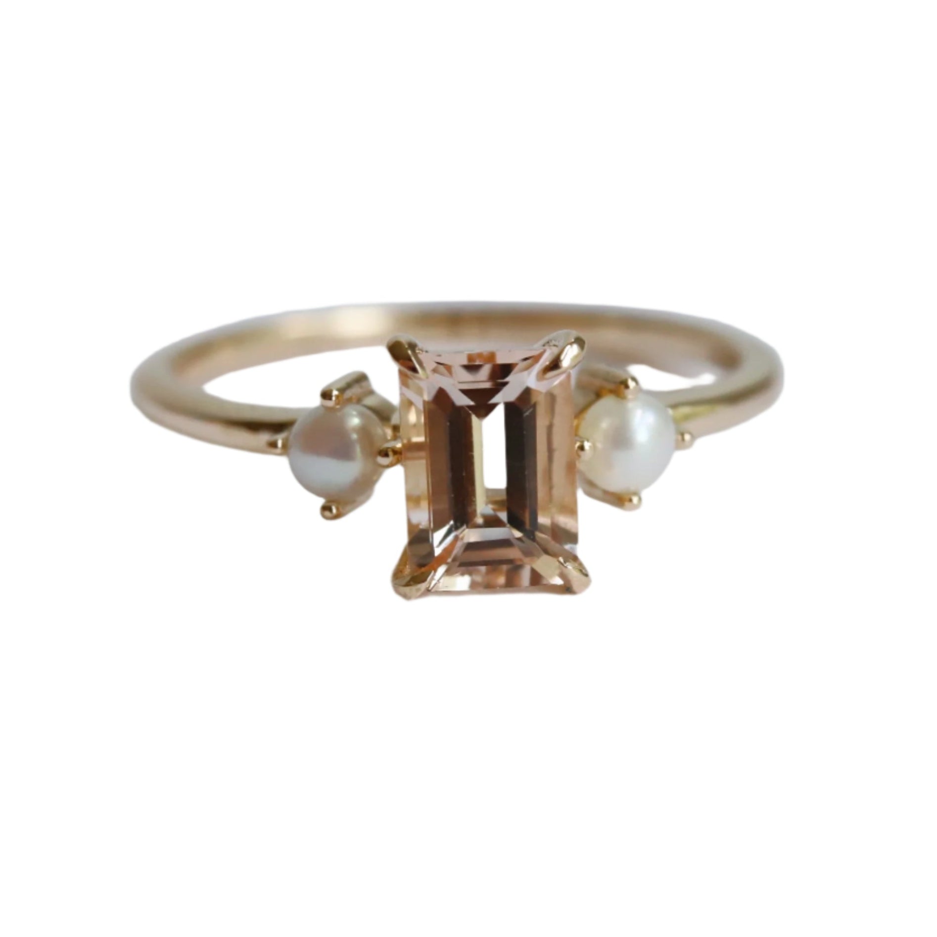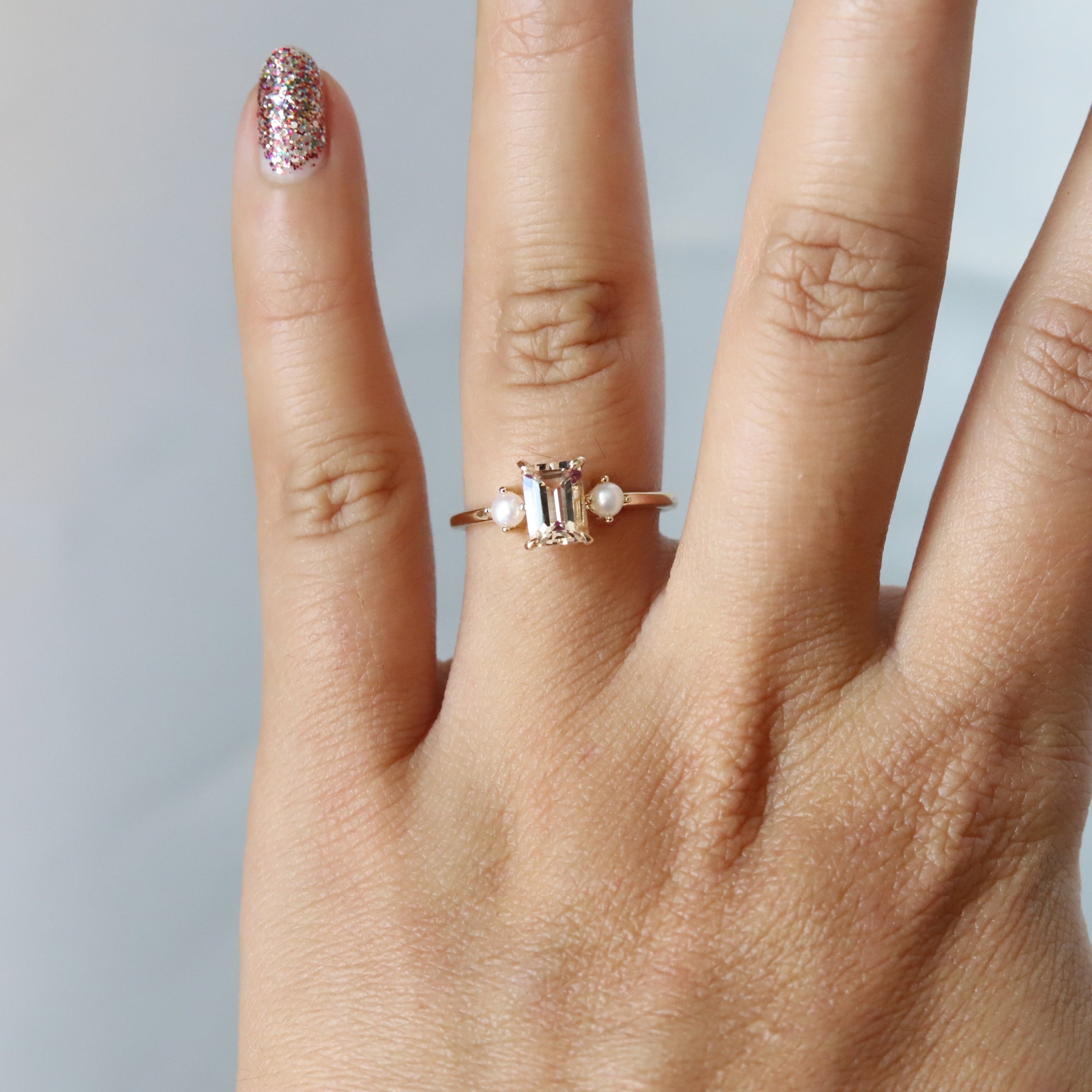 EVA | 1 ct. Emerald Cut Peach Morganite and Pearl Ring