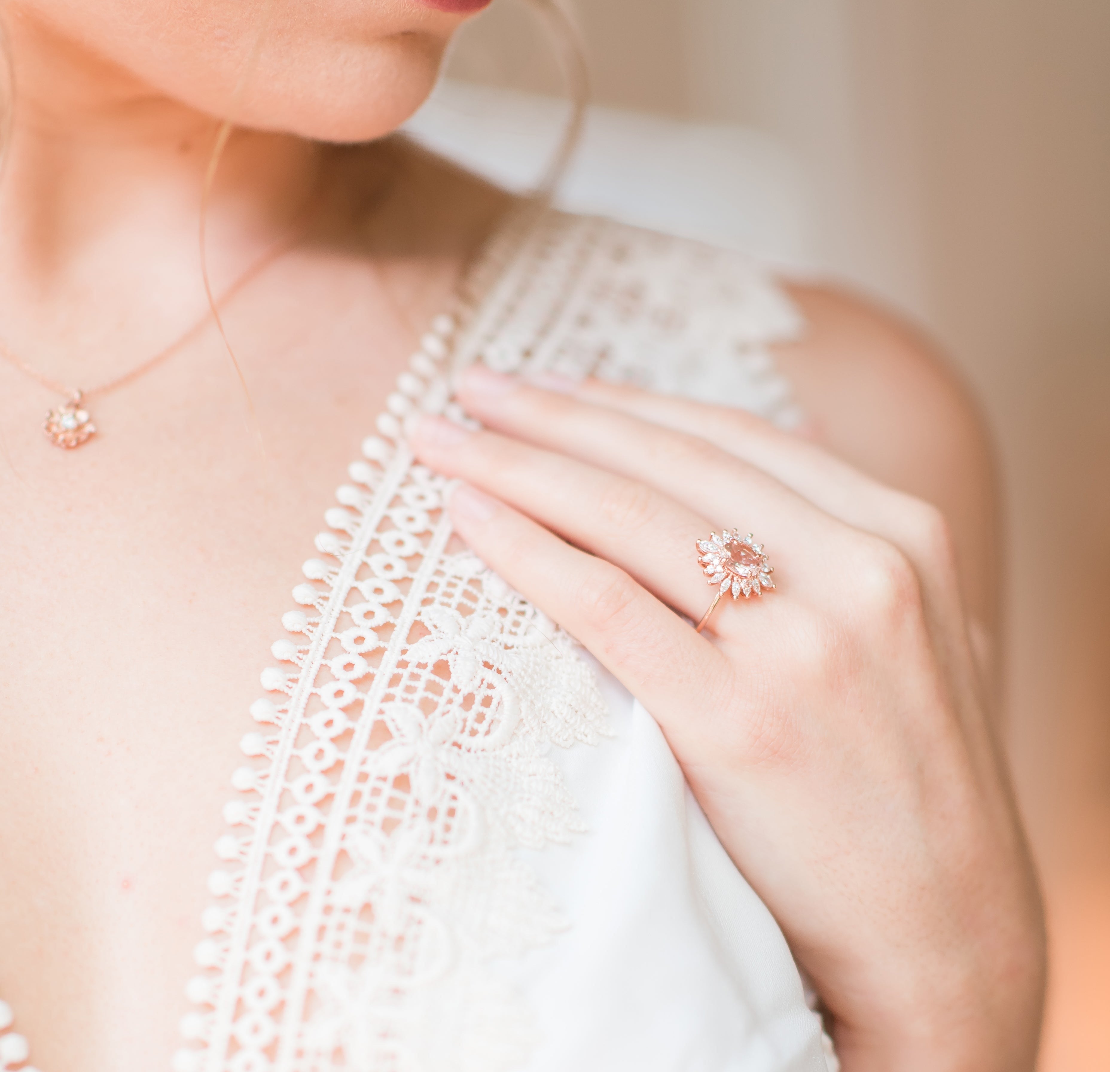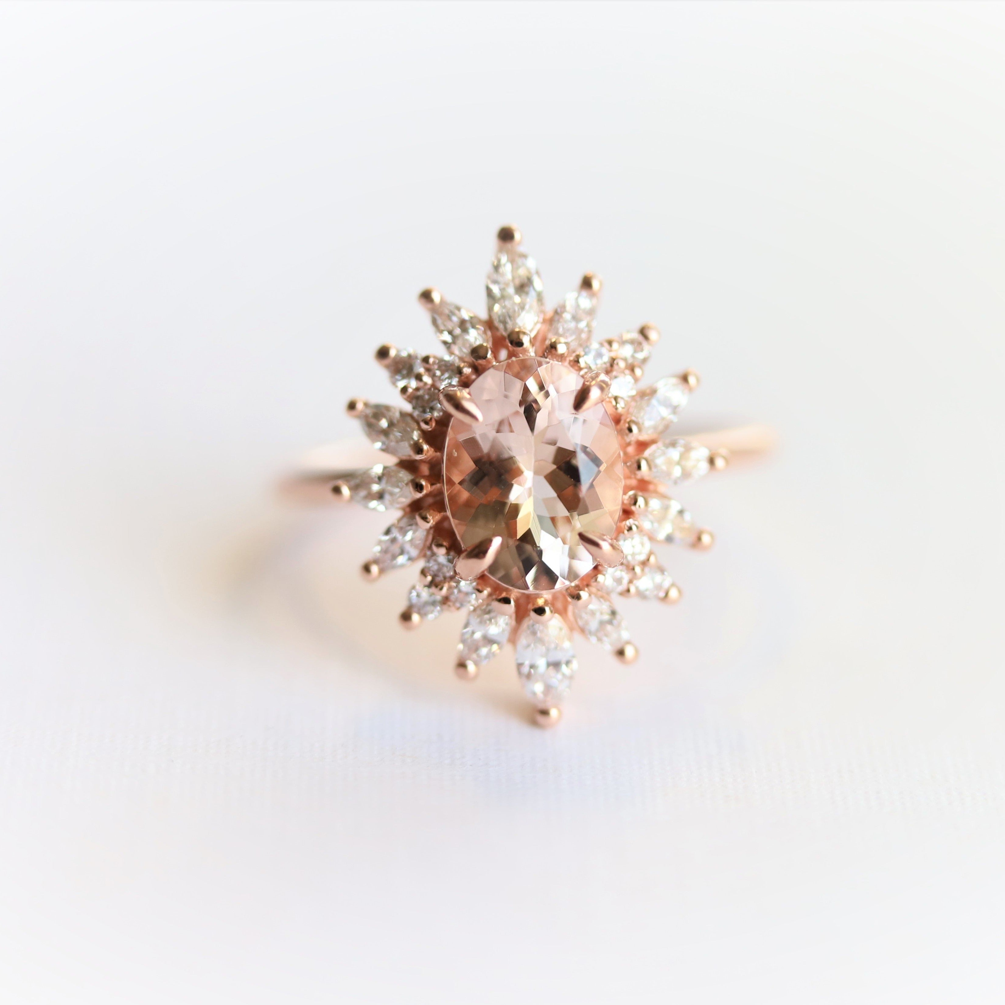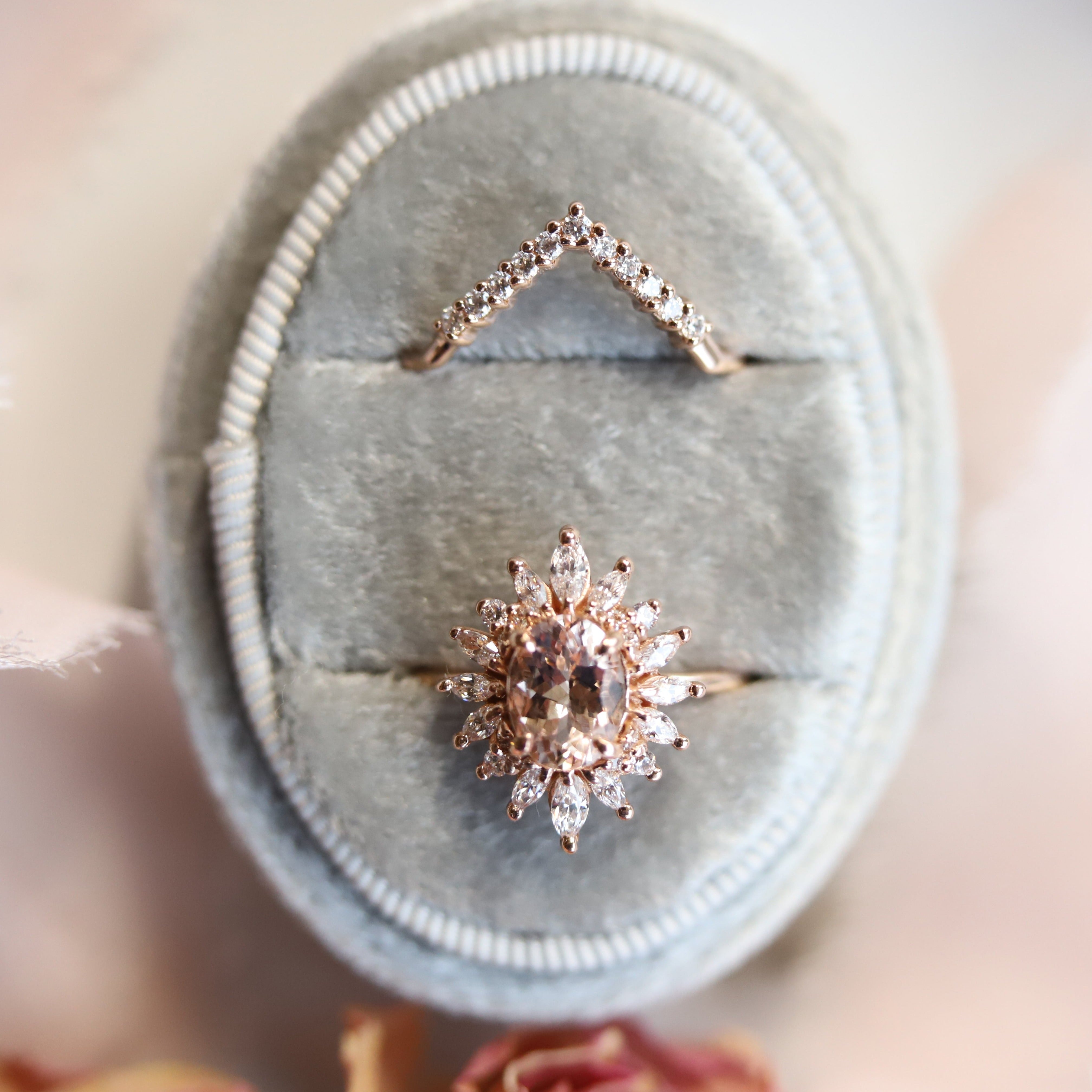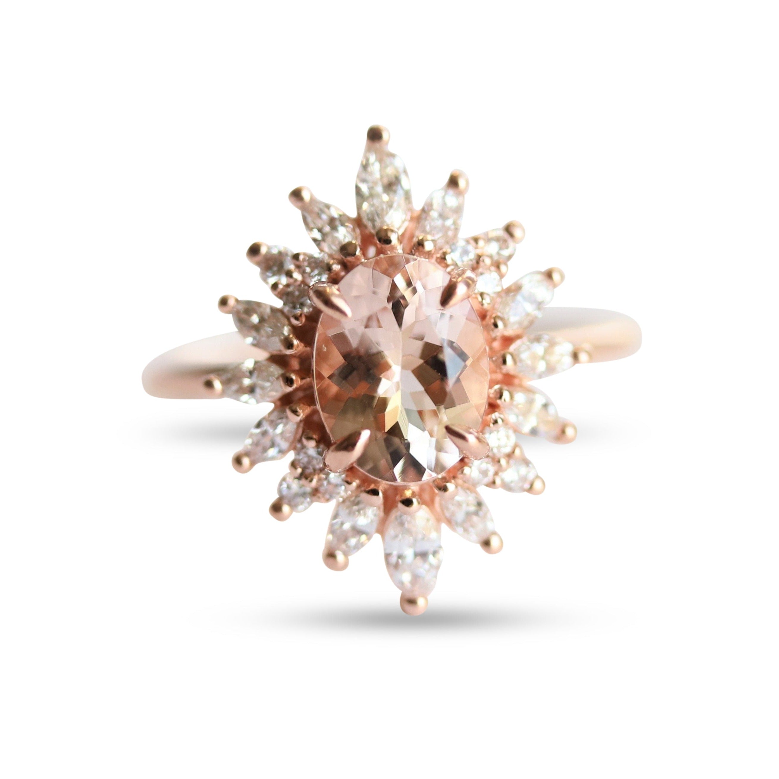 The Lana ring adds romance and sophistication to any look with its classic oval Morganite gemstone, framed by a glittering, diamond-adorned halo setting. Feminine and elegant, it is the perfect way to show your special someone your love.