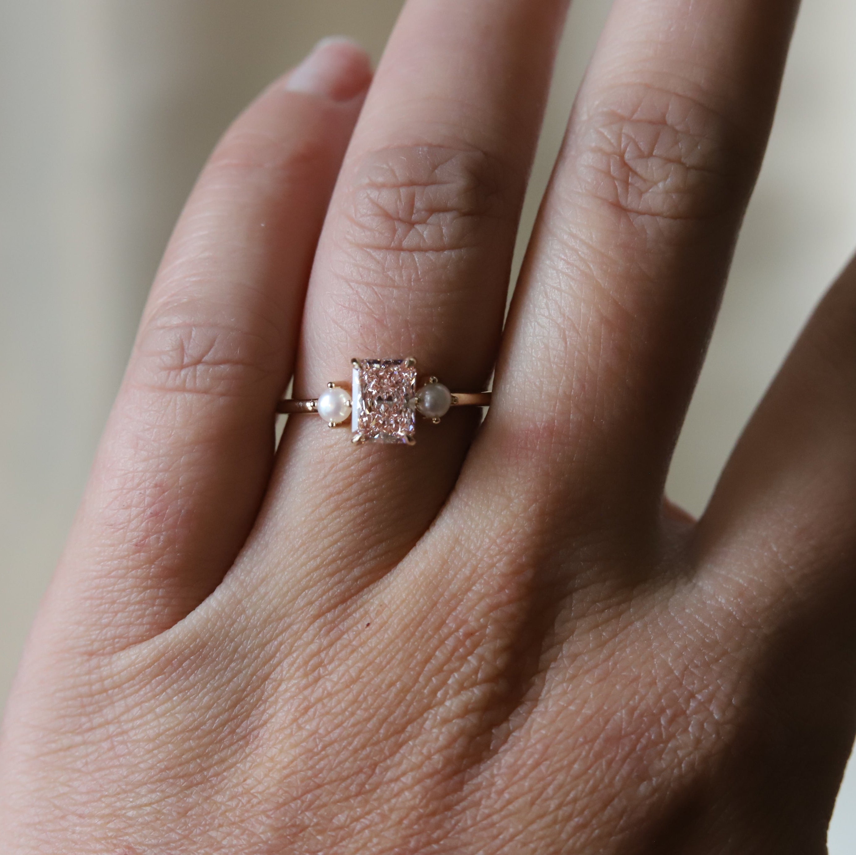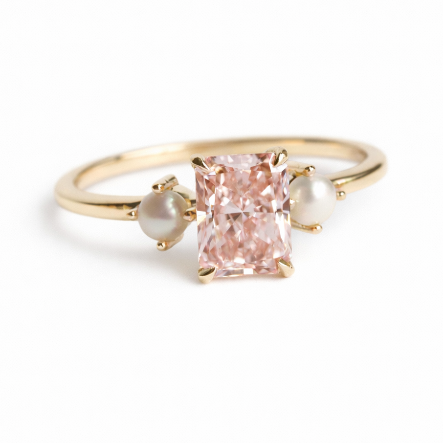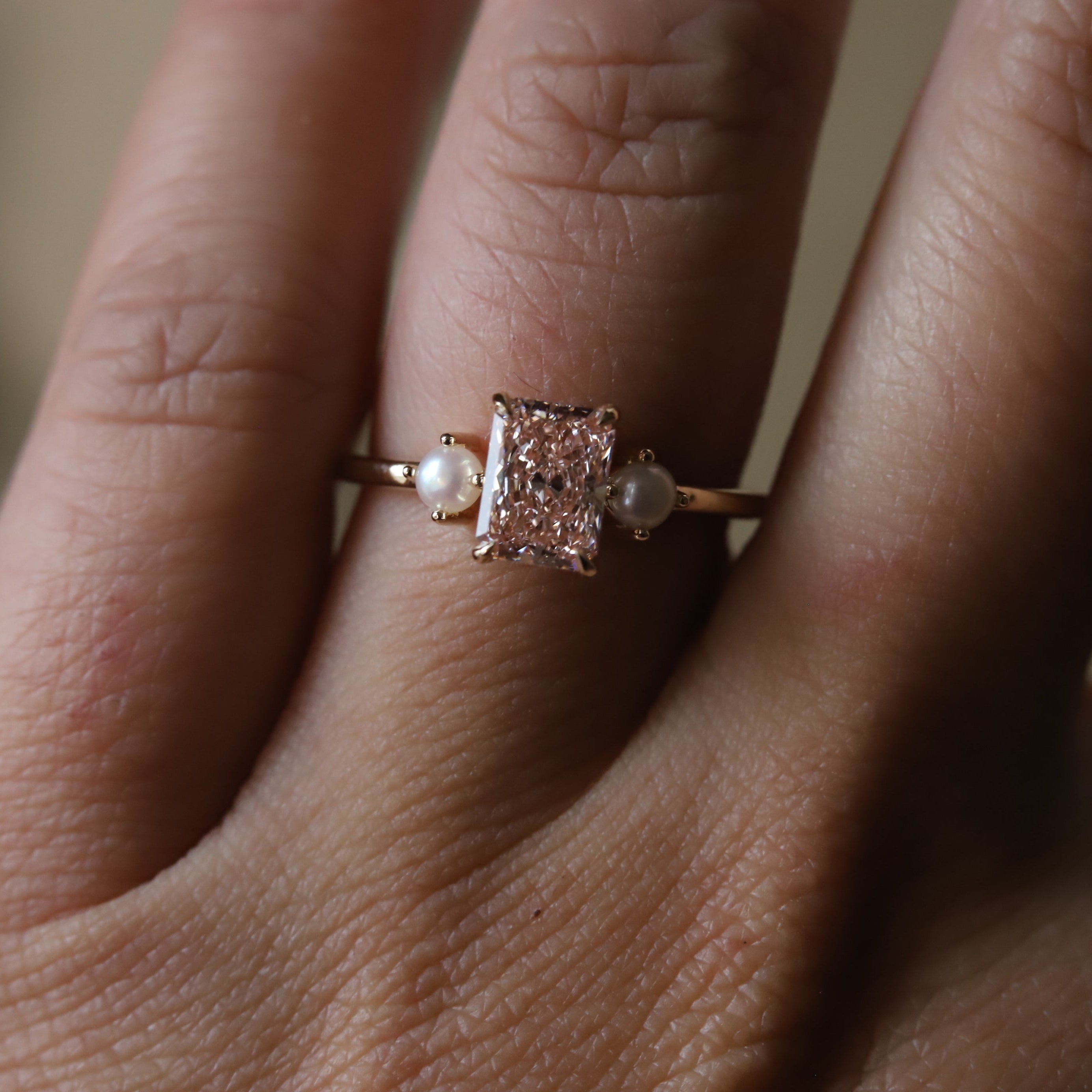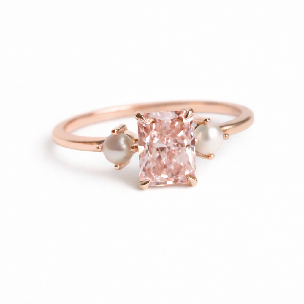 Eva | Radiant Pink Diamond and Pearls Three-Stone Ring