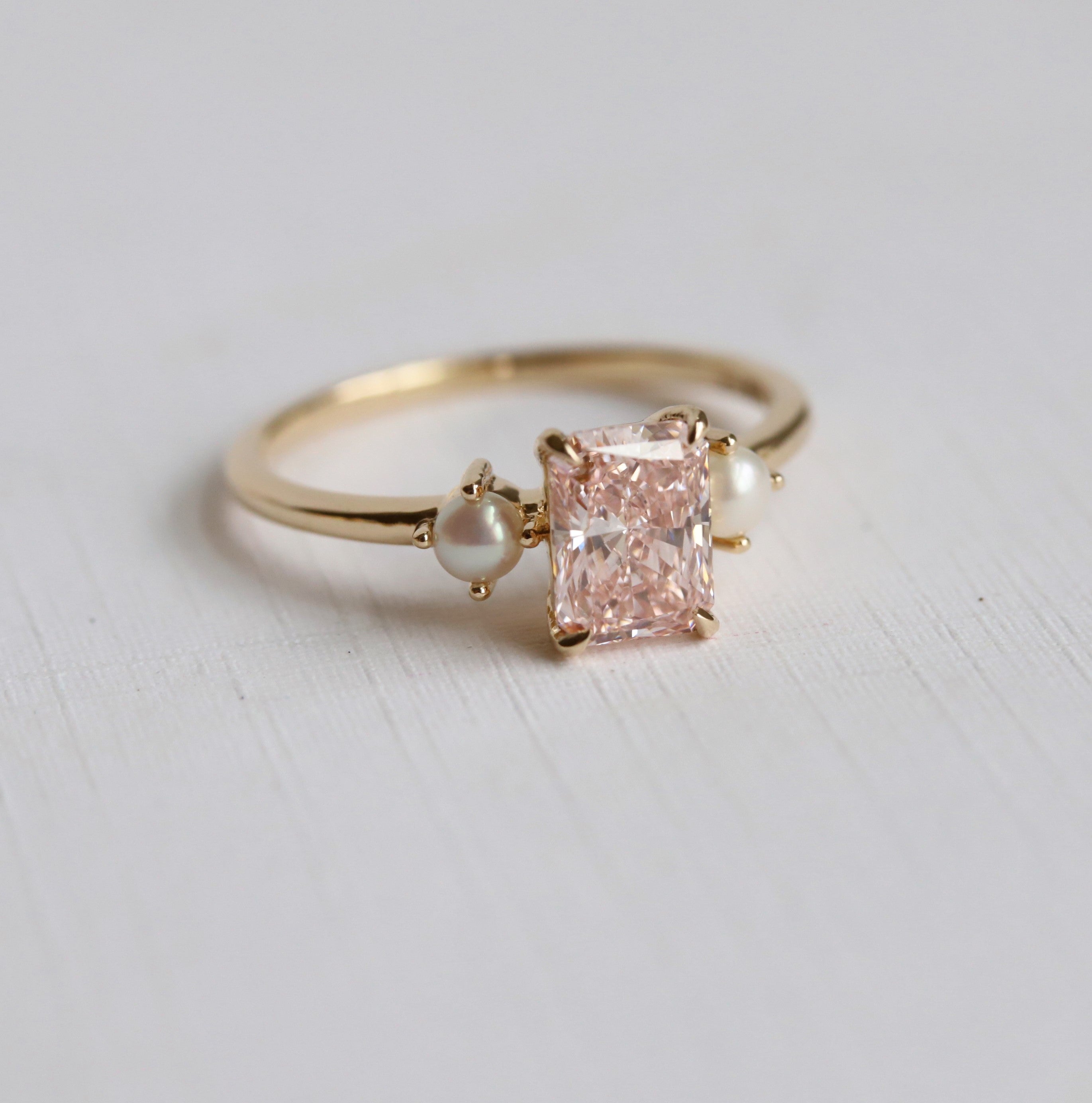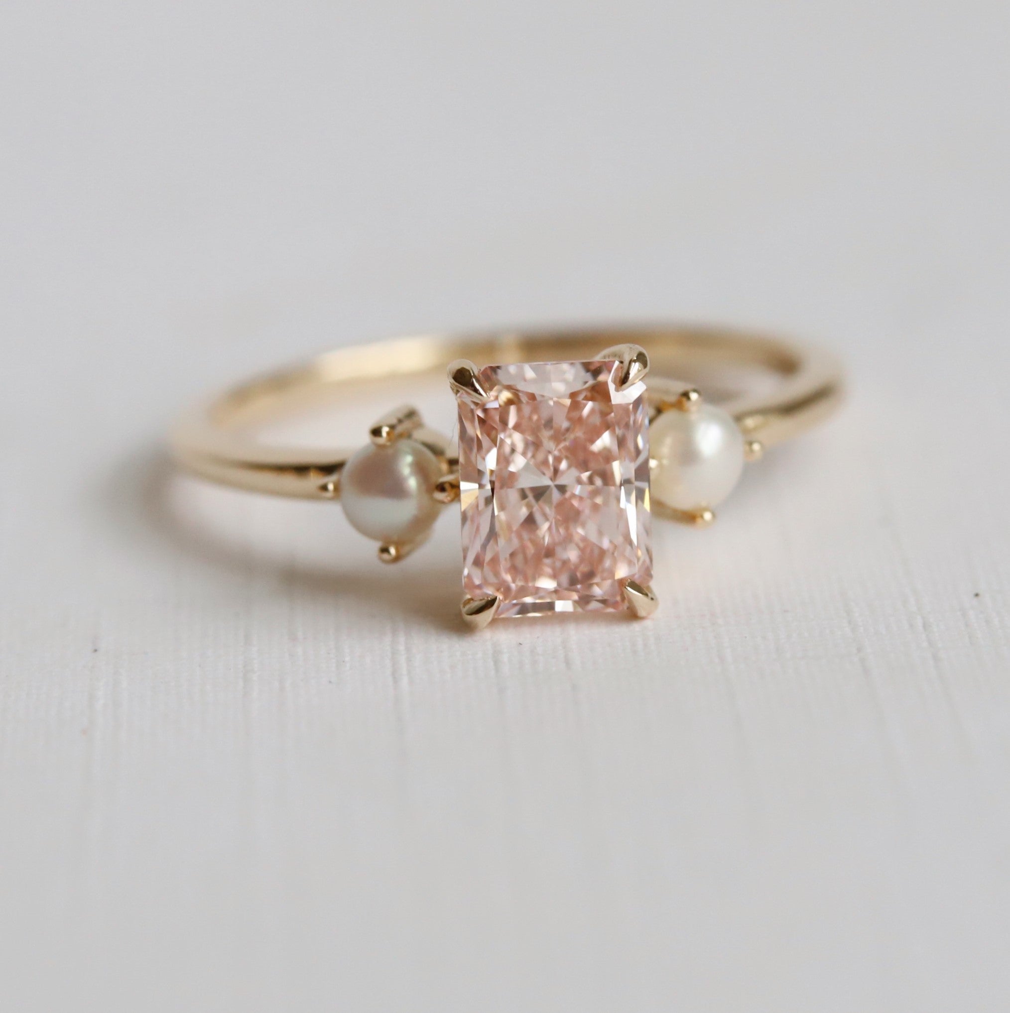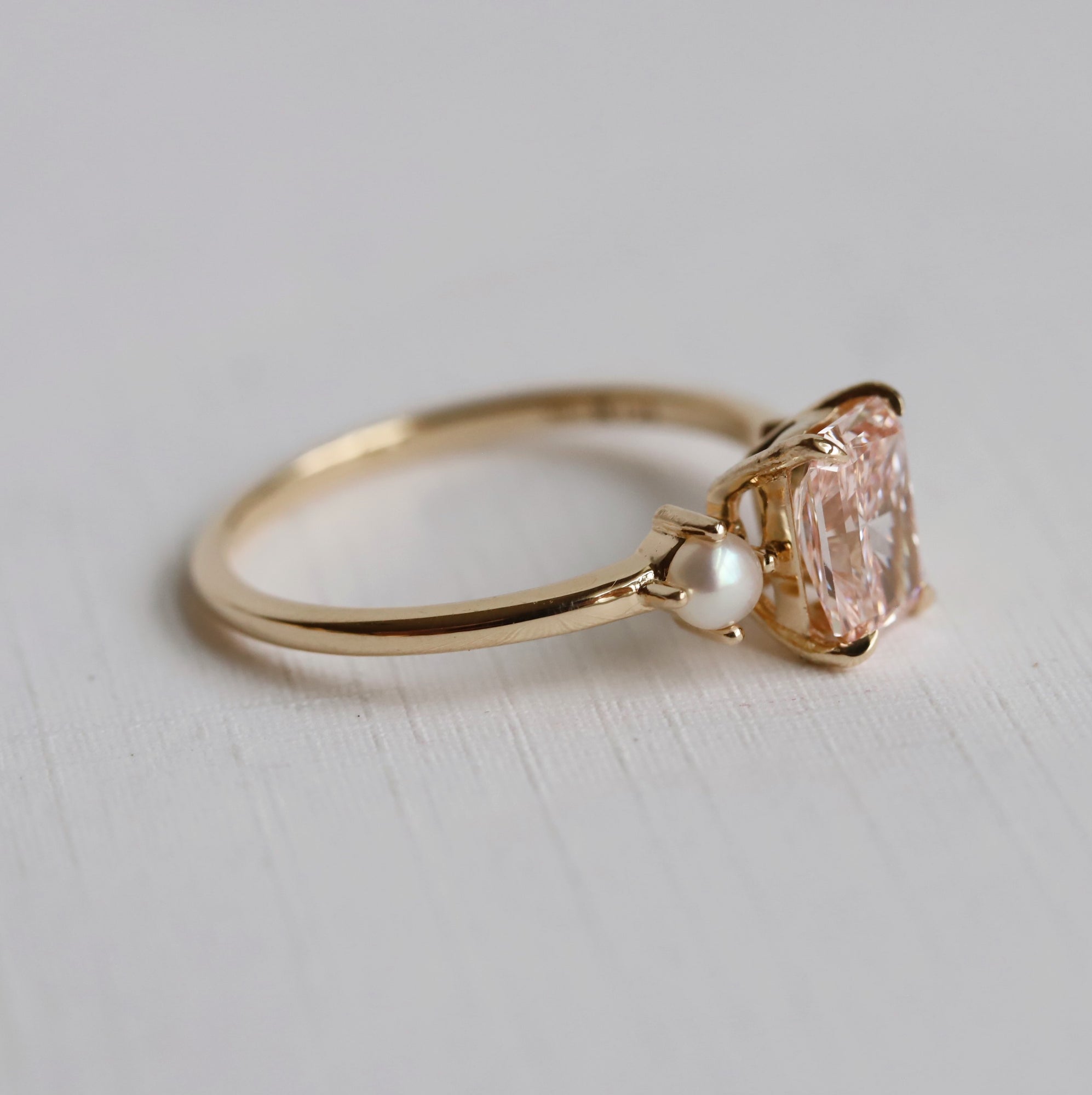 Eva | Radiant Pink Diamond and Pearls Three-Stone Ring