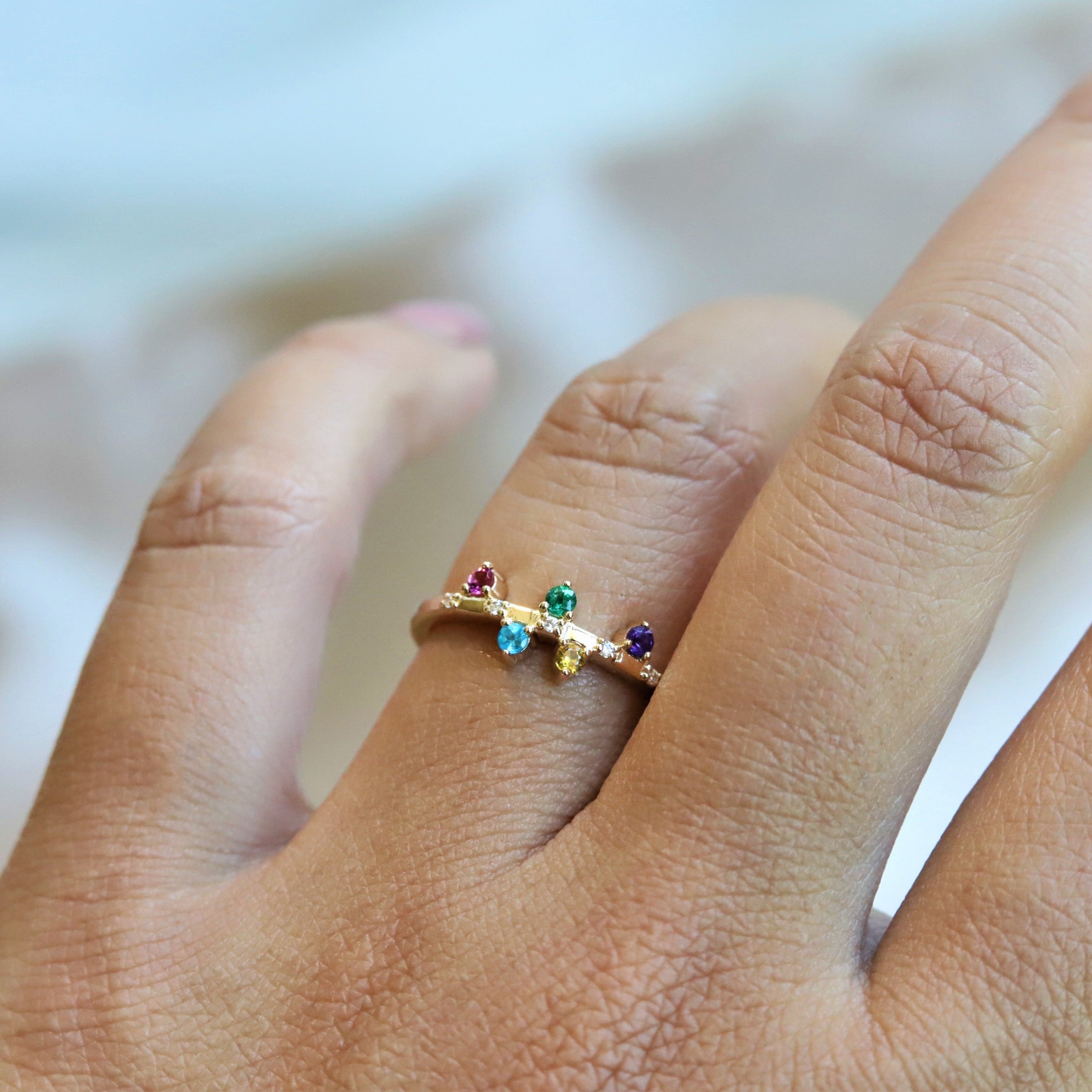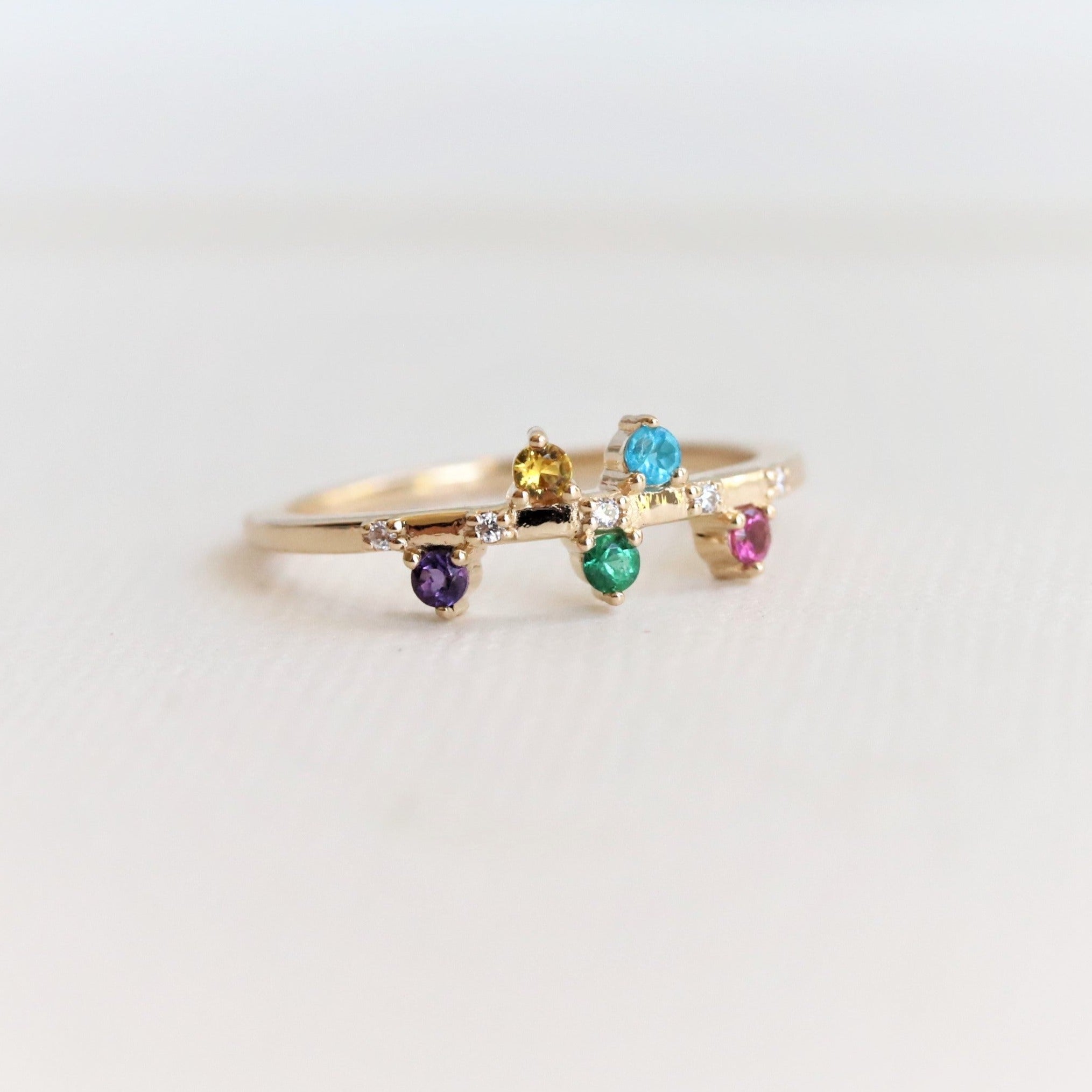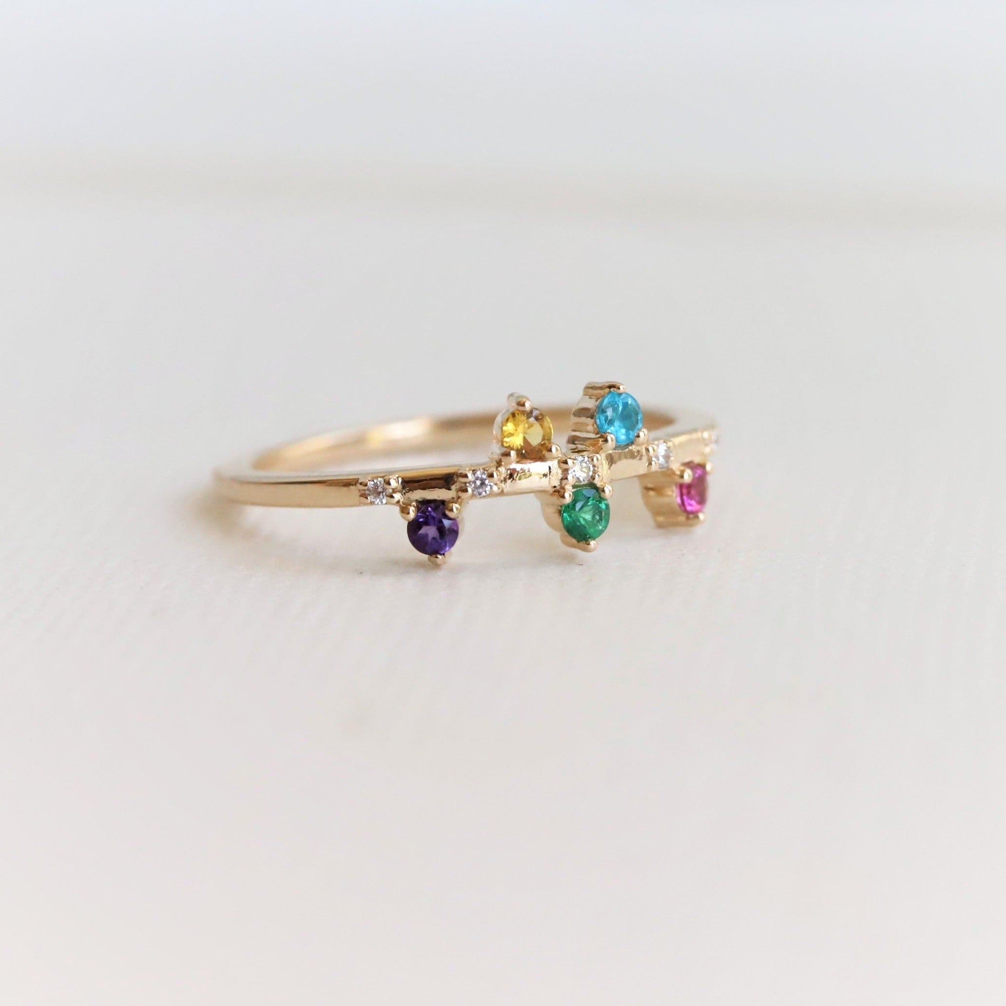 This ring can be customized to feature any stones you choose, making them perfect for Mother’s Day, Anniversaries, birthstone gifts & creative ways to add color to your jewelry collection.