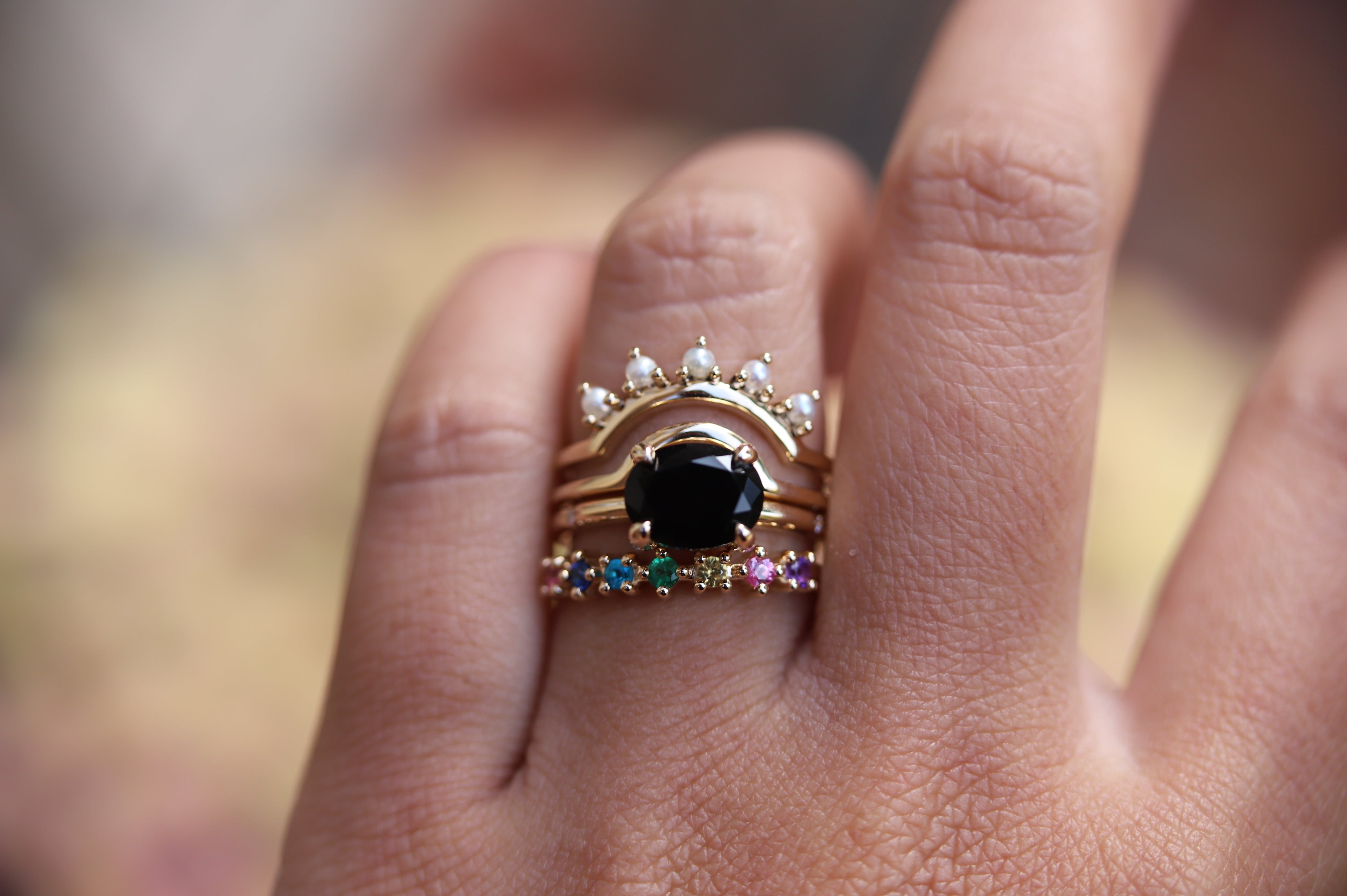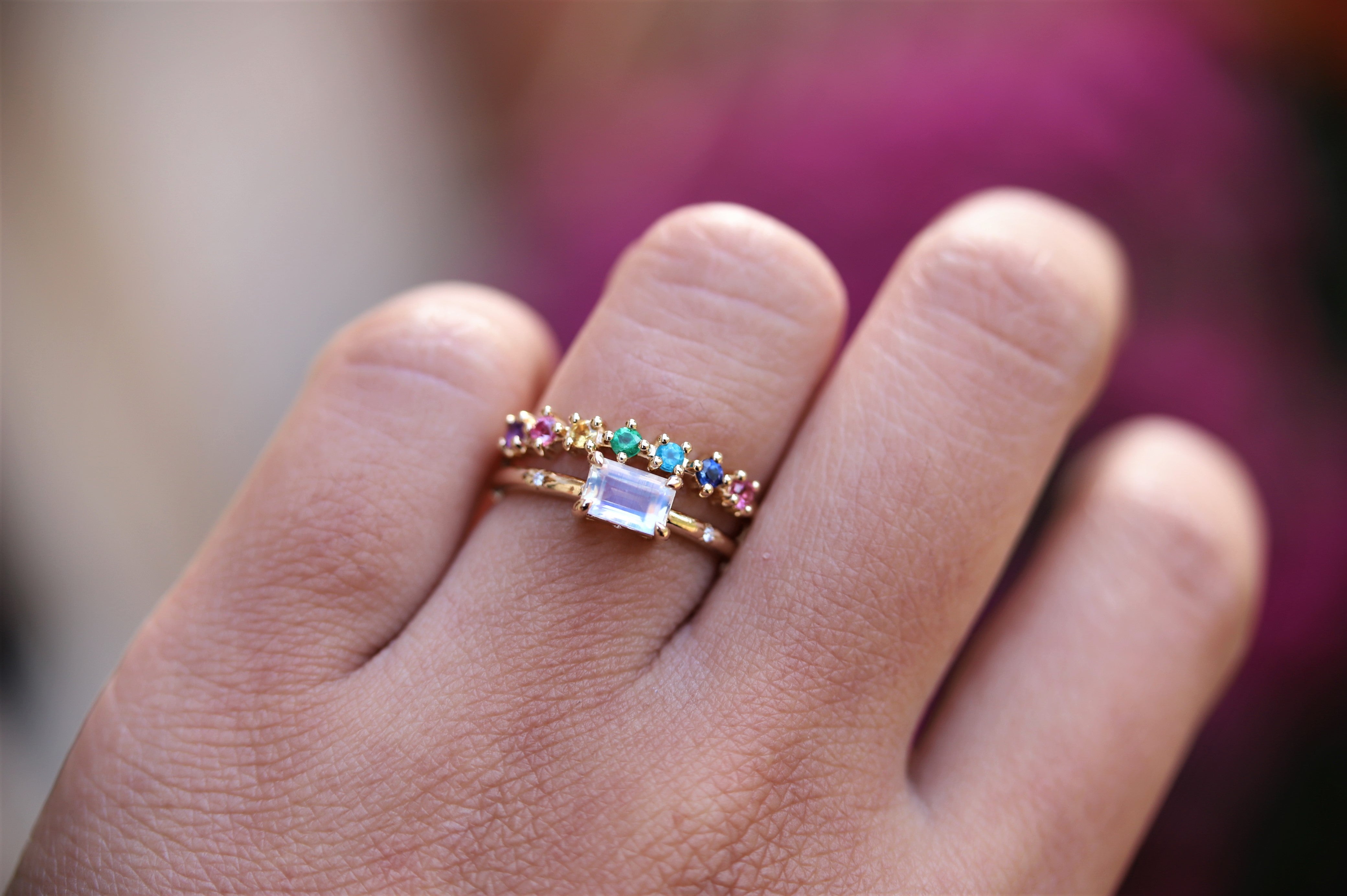 This ring can be customized to feature any stones you choose, making them perfect for Mother’s Day, Anniversaries, birthstone gifts & creative ways to add color to your jewelry collection.