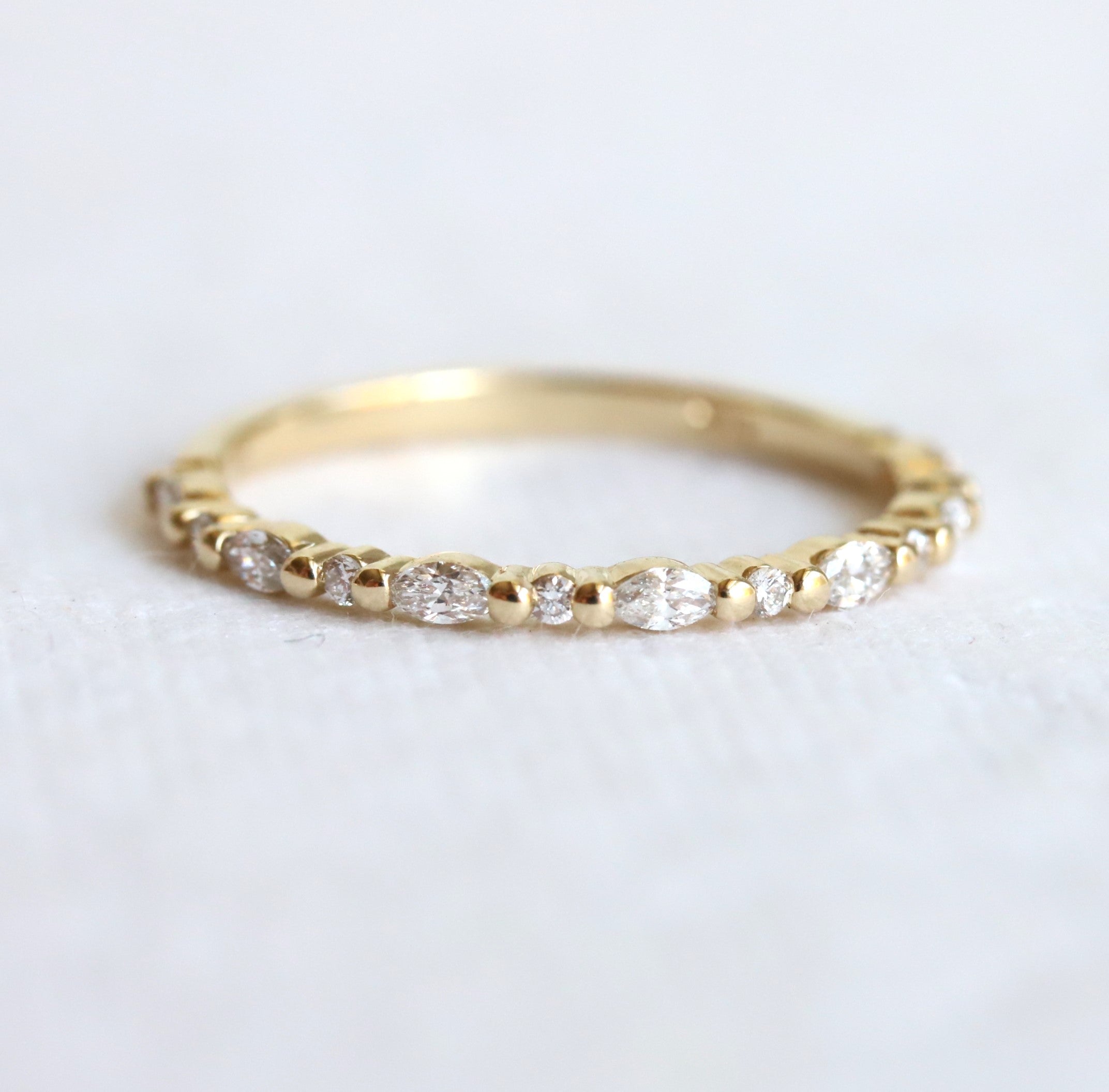 Whether starting a new chapter in your love story or turning the page on another fantastic year with your special someone, this delicate diamond band ring marks any milestone with exquisite elegance