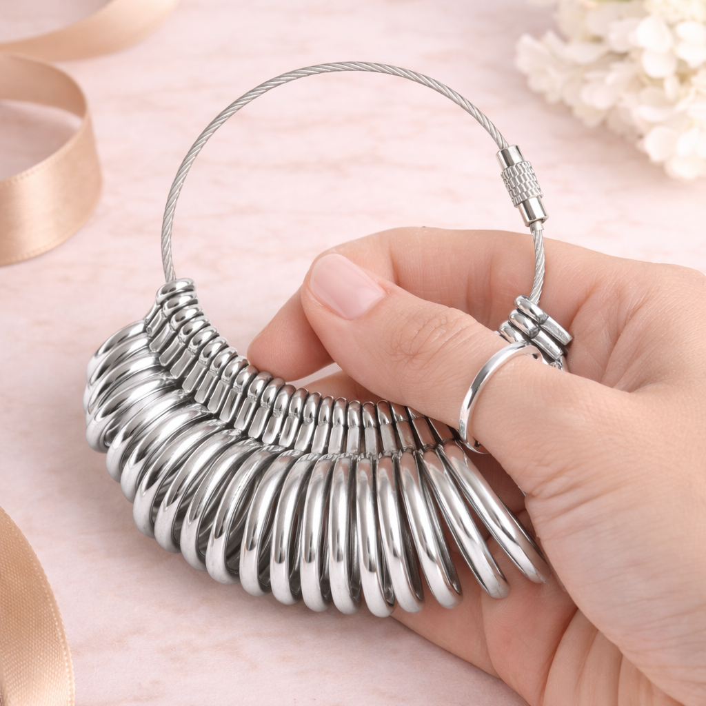 Find your perfect fit with our at-home metal ring sizer. This metal ring sizer is durable and designed to accurately measure ring sizes.