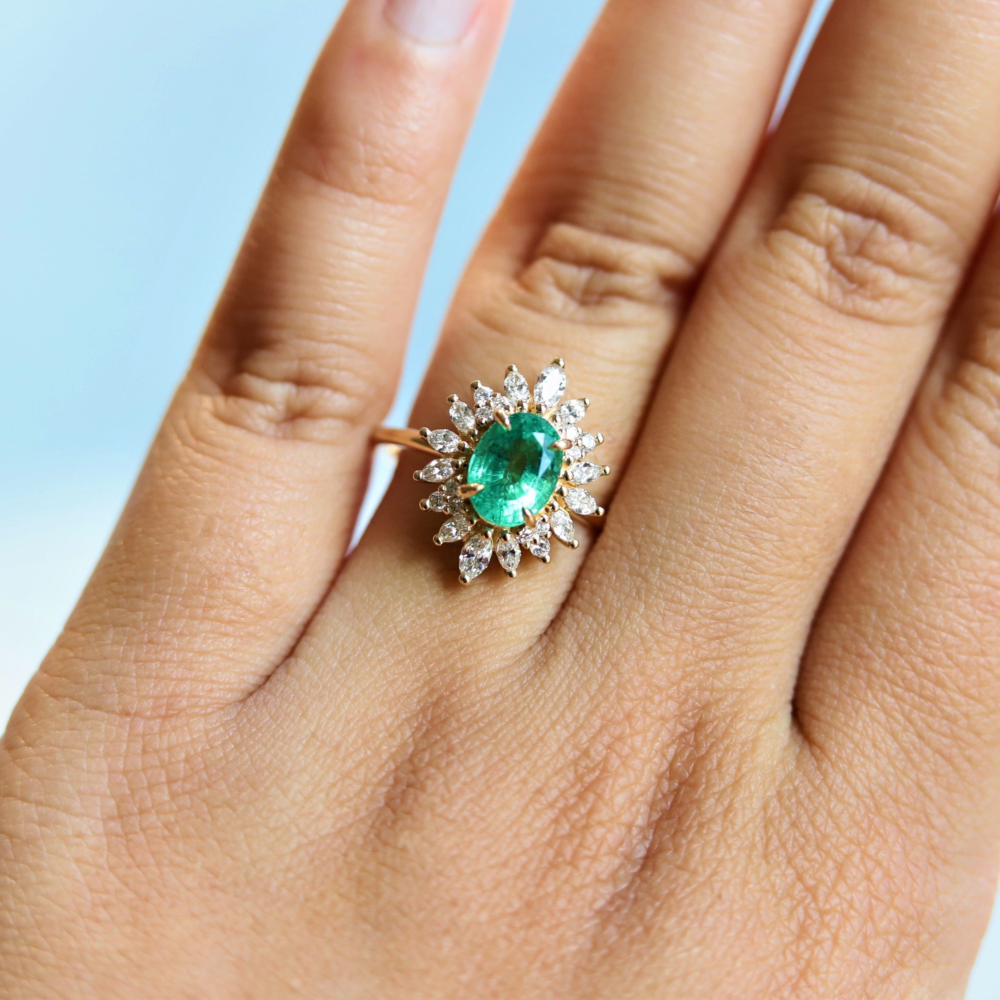 Lana | Oval Zambian Emerald Halo Ring