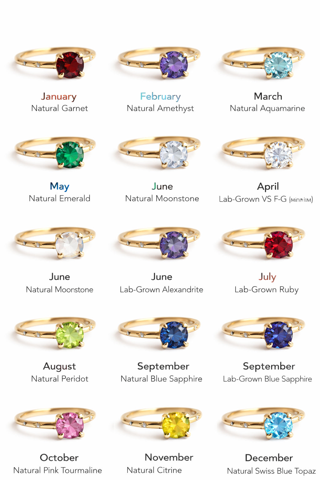 - Available gemstones to choose from: